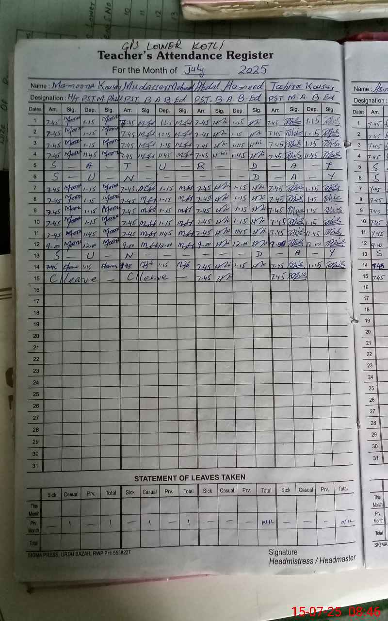 | 37**** | Ma**** Ko**** | PST | Regular | 1 | 0 | 0 | 0 | 0 | 0 | 0 | 0 | 1 | Casual |