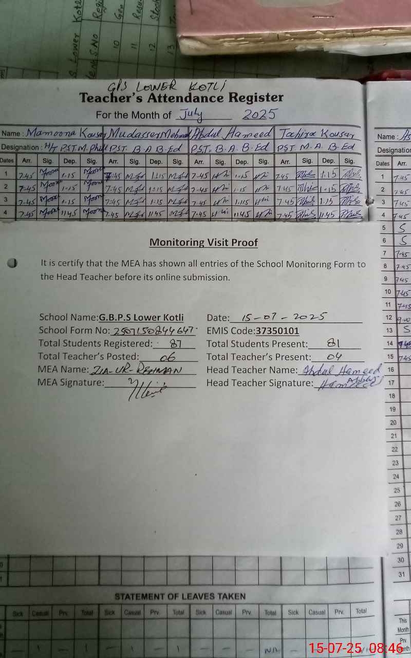 | EMIS Code: 37350101 | Name of School: GPS LOWER KOTLI | |||