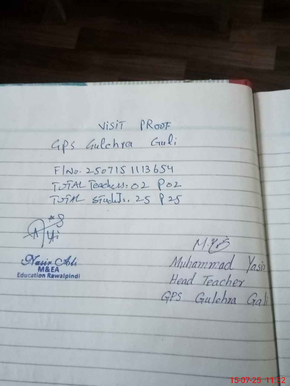 | Attendance Register | Head Teacher | MEA with School | Visit Proof |