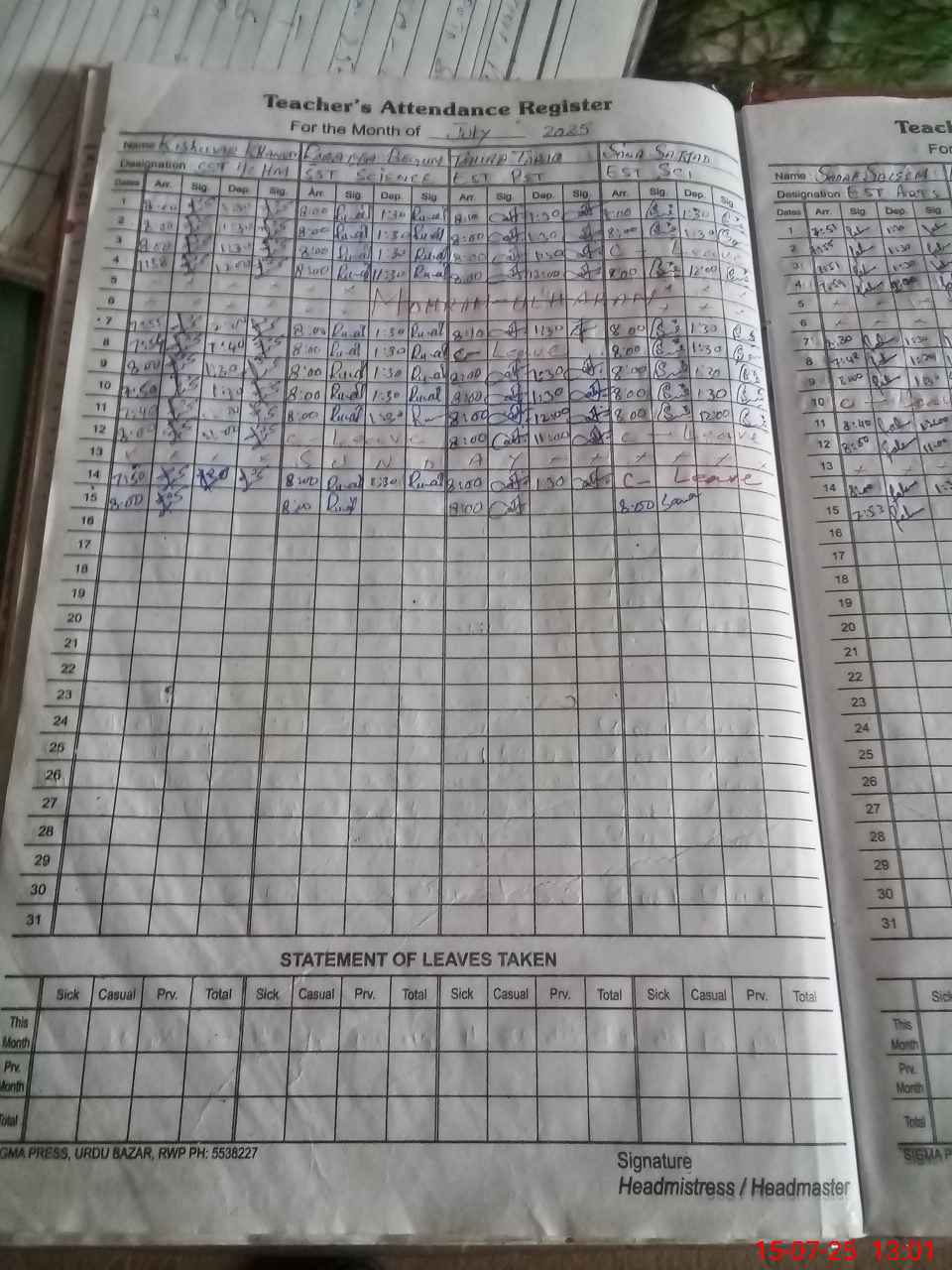 | 37**** | Qa**** Ma**** | LAB ATTENDANT | Regular | 0 | 0 | 0 | 0 | 0 | 0 | 0 | 0 | 0 | Casual |