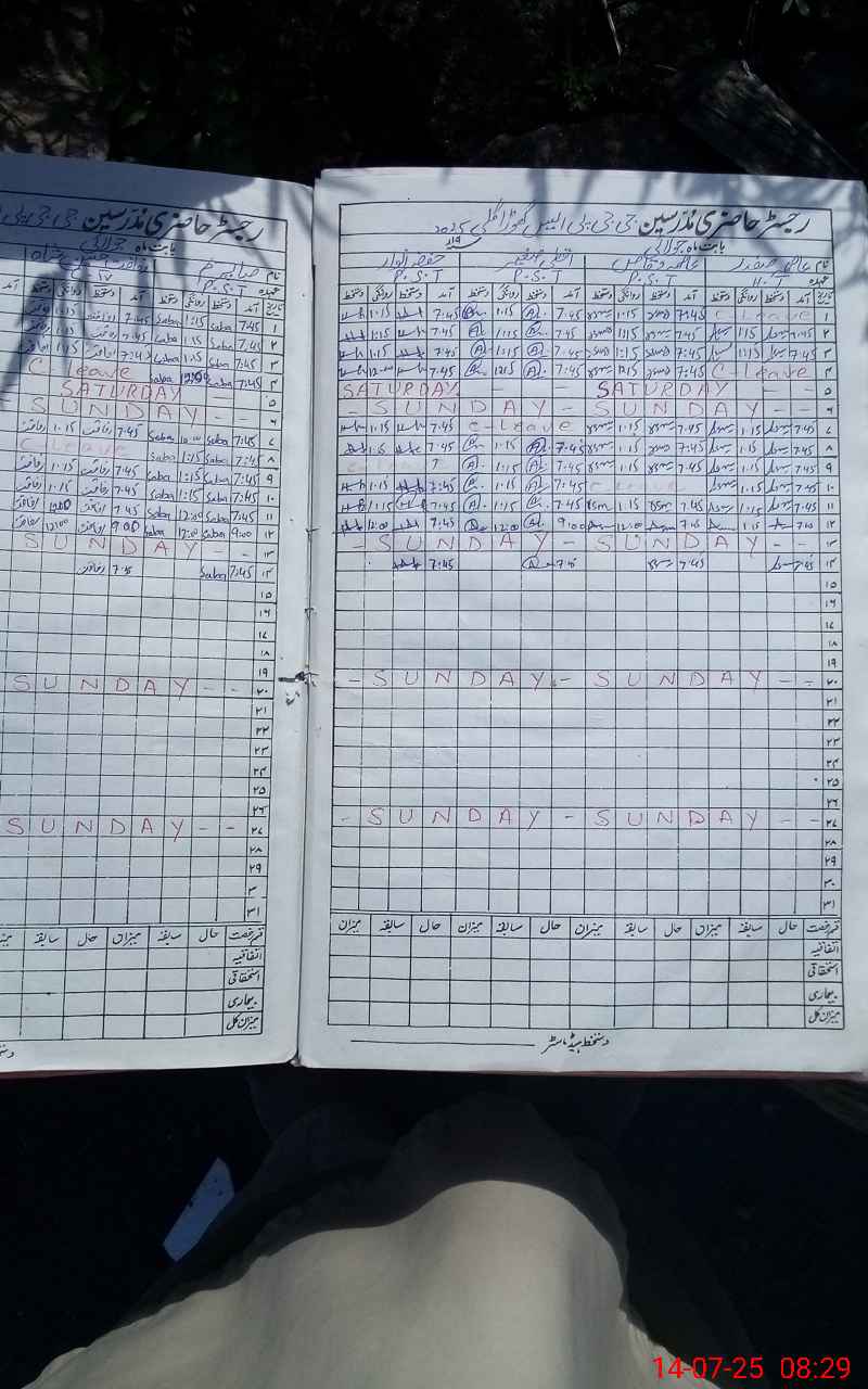 | CNIC | Full Name | Designation | R/C | Absence During Last Calender Month |