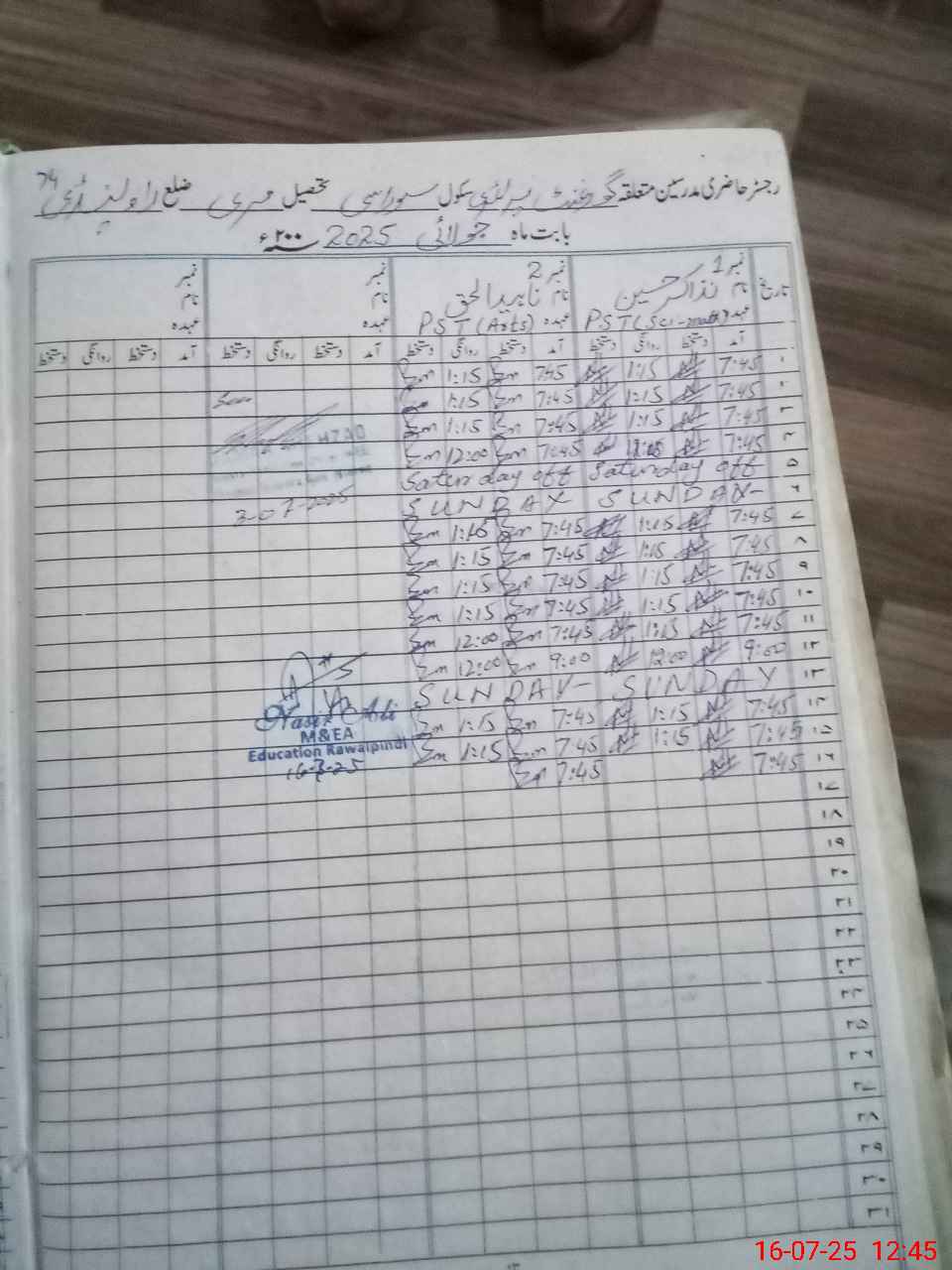 | CNIC | Full Name | Designation | R/C | Absence During Last Calender Month |