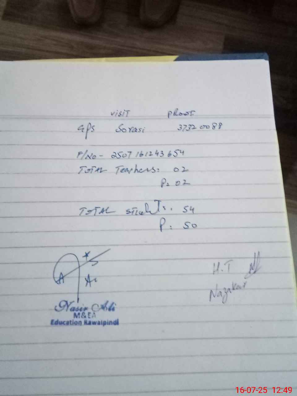 | Name: Na**** Hu**** Designation: (School Headmaster's/Headmistress's) ESE Phone/Cell Number: 03**** |