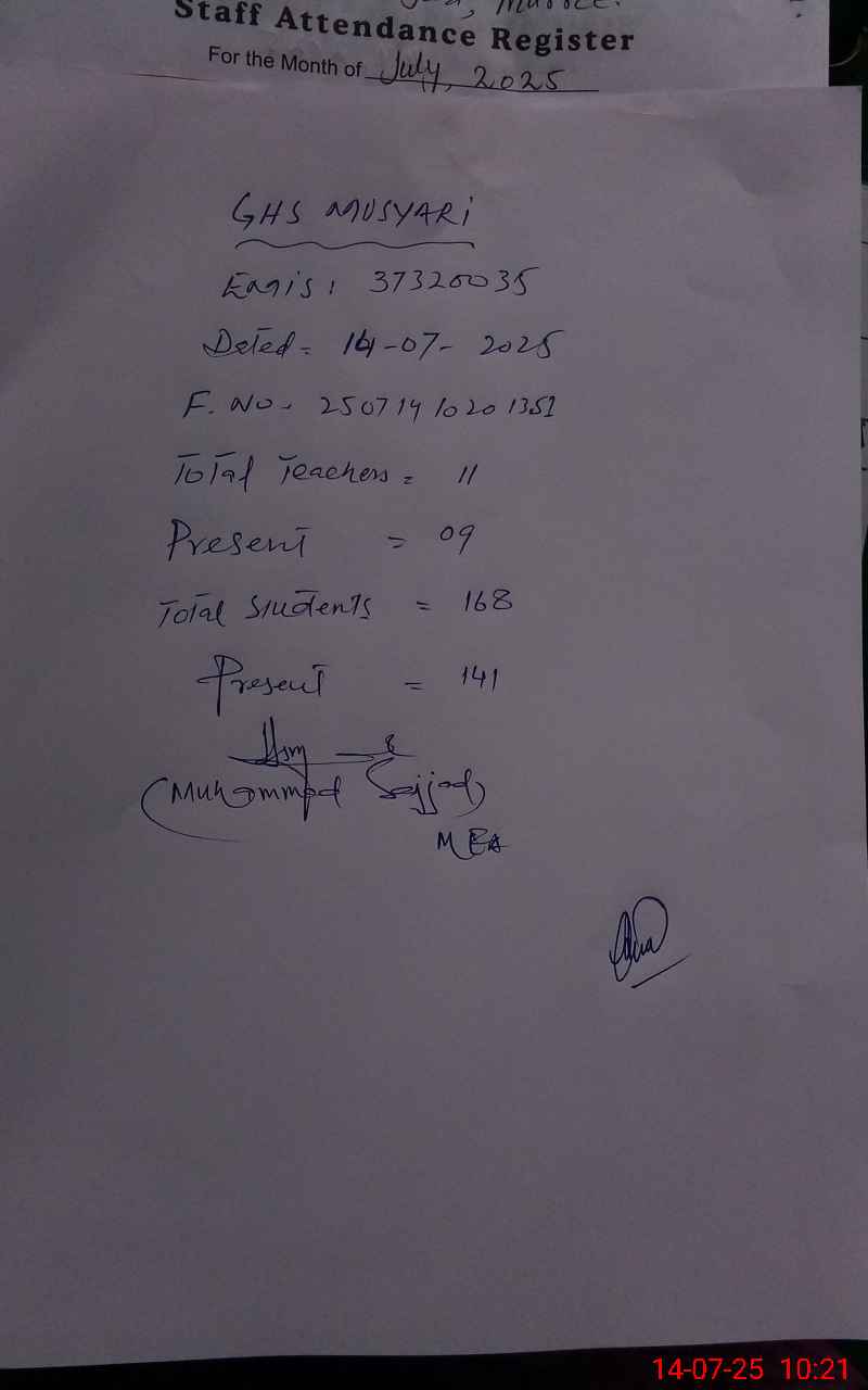 | EMIS Code: 37320035 | Name of School: GHS MUSYARI | |||