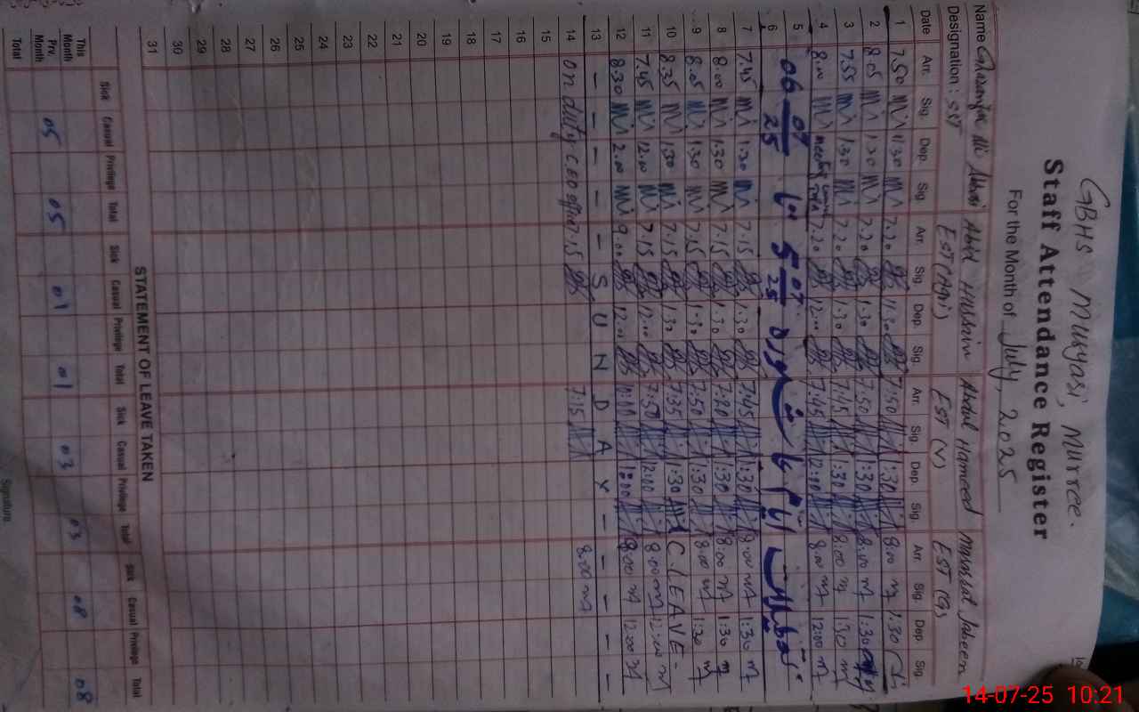 | 37**** | Mu**** As**** Ya**** | 3 | 1 | 0 | 0 | 0 | 0 | 0 | 0 | 0 | 0 | 0 | Absent (Un-Authorized) |