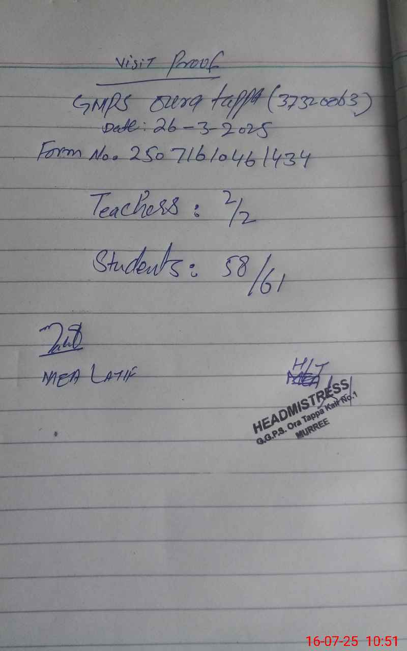 | Attendance Register | Head Teacher | MEA with School | Visit Proof |