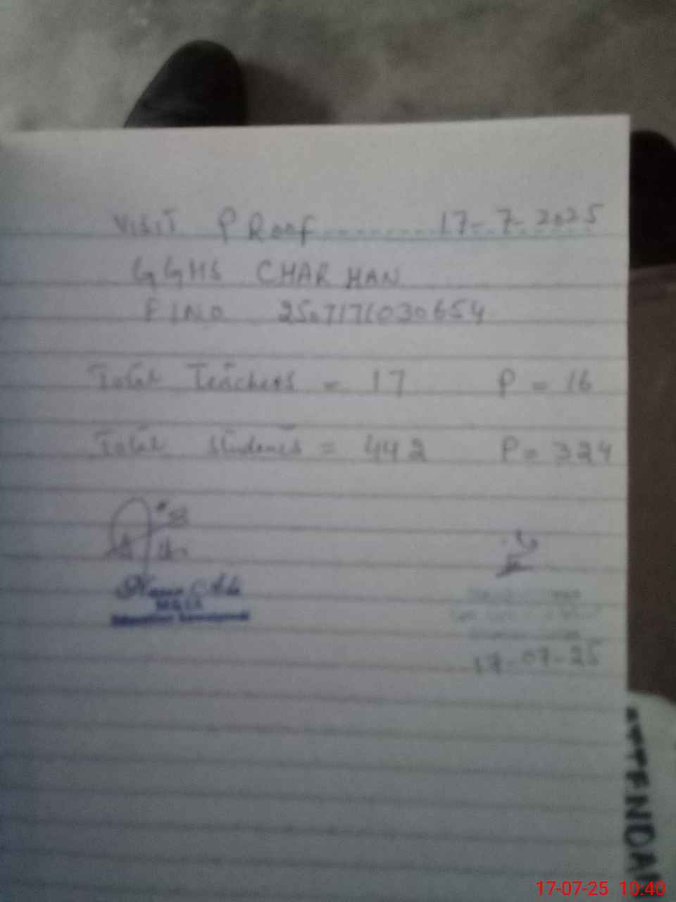 | Attendance Register | Head Teacher | MEA with School | Visit Proof |