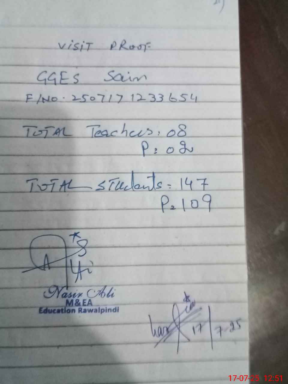 | Attendance Register | Head Teacher | MEA with School | Visit Proof |