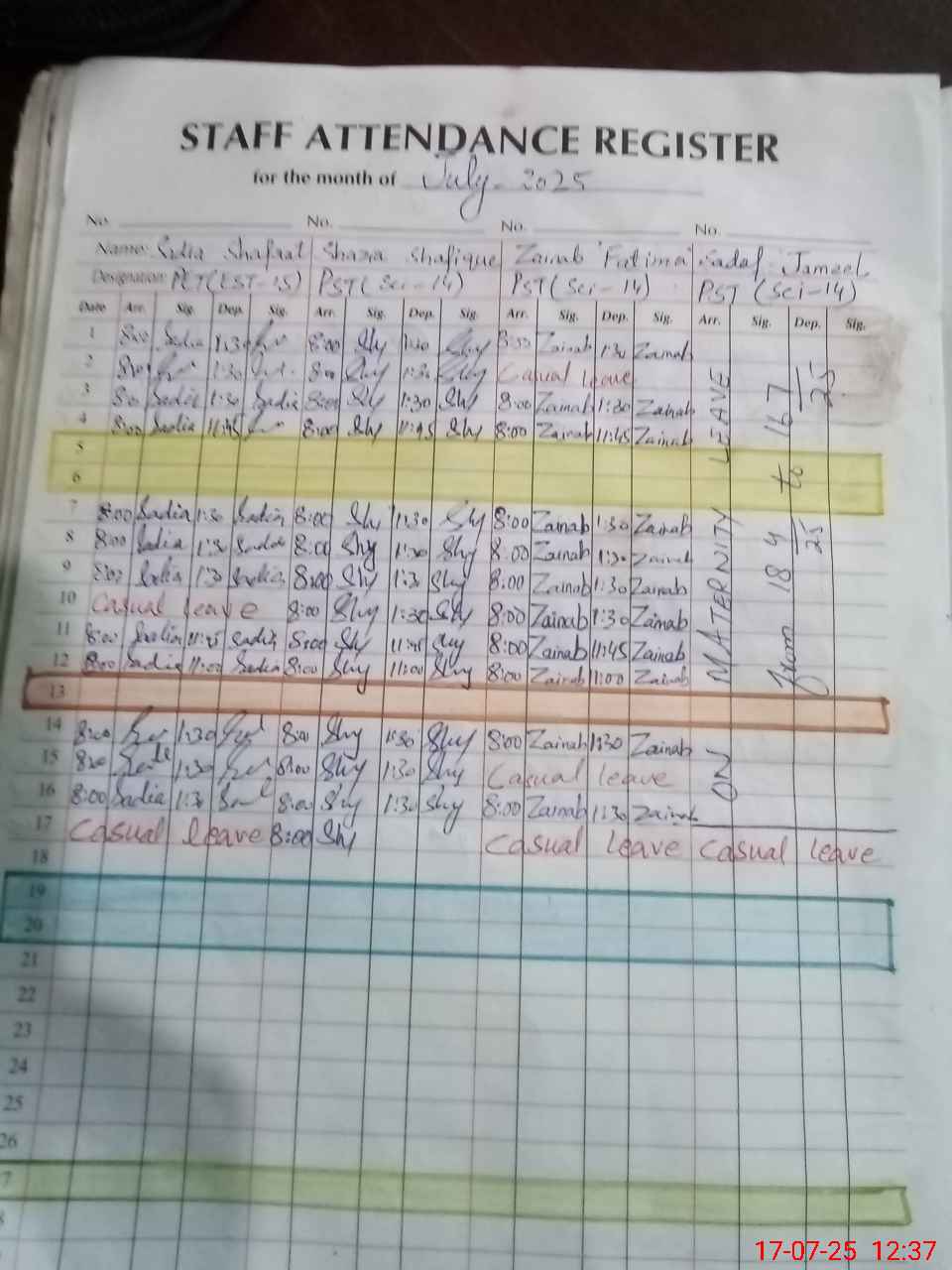 | 37**** | Sa**** Ja**** | PST | Regular | 0 | 0 | 0 | 0 | 0 | 0 | 0 | 0 | 0 | Casual |