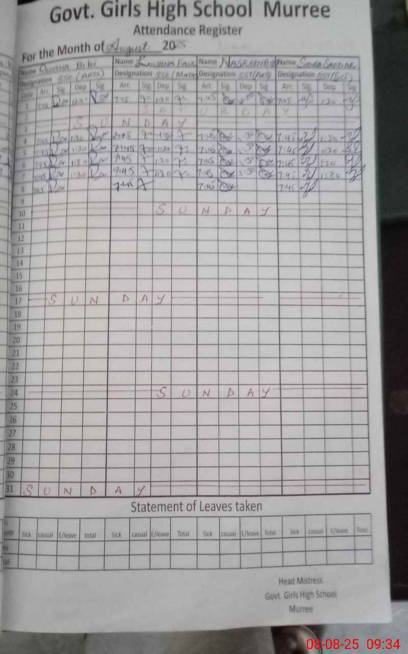 | EMIS Code: 37320020 | Name of School: GGHS MURREE CITY | |||