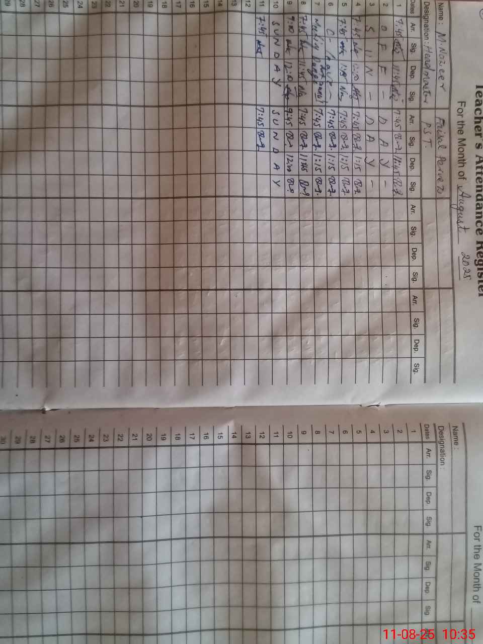 | Name: Mu**** Na**** Designation: (School Headmaster's/Headmistress's) PST Phone/Cell Number: 03**** |