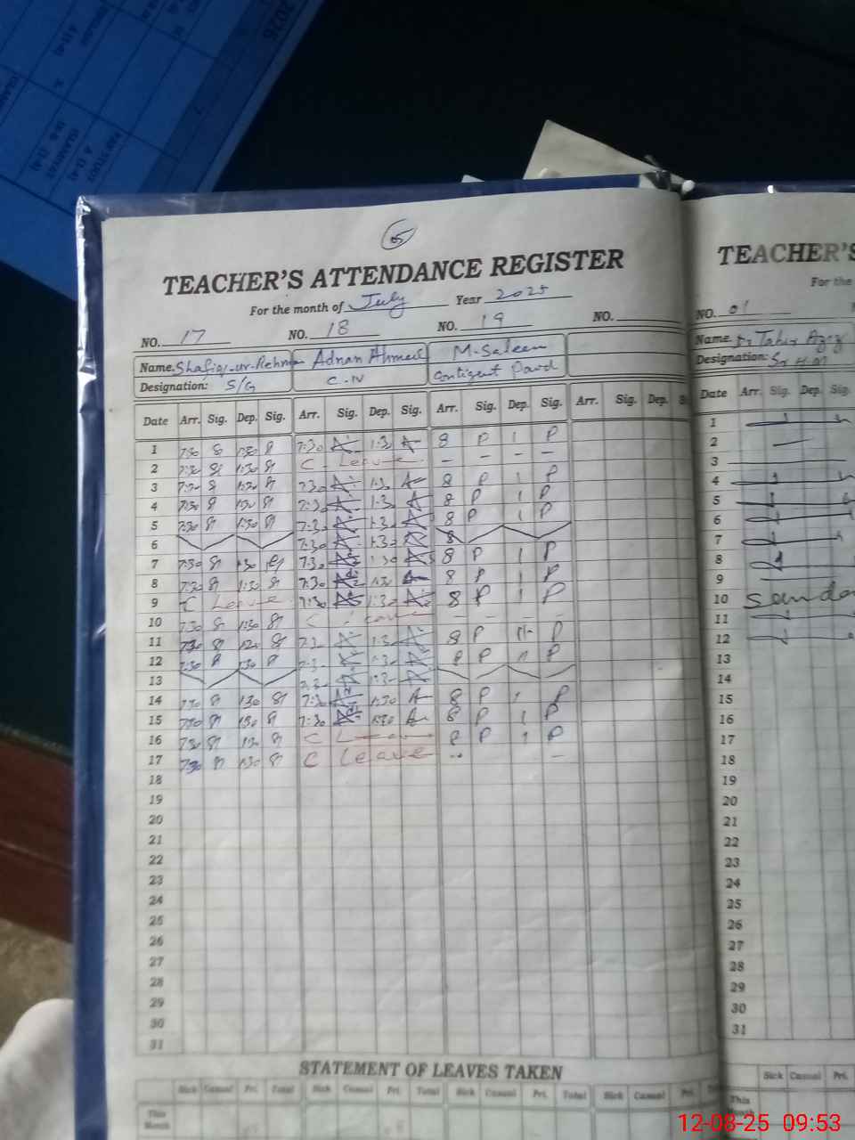 | 37**** | Ab**** Ma**** | SST | Regular | 0 | 0 | 0 | 0 | 0 | 0 | 0 | 0 | 0 | Casual |