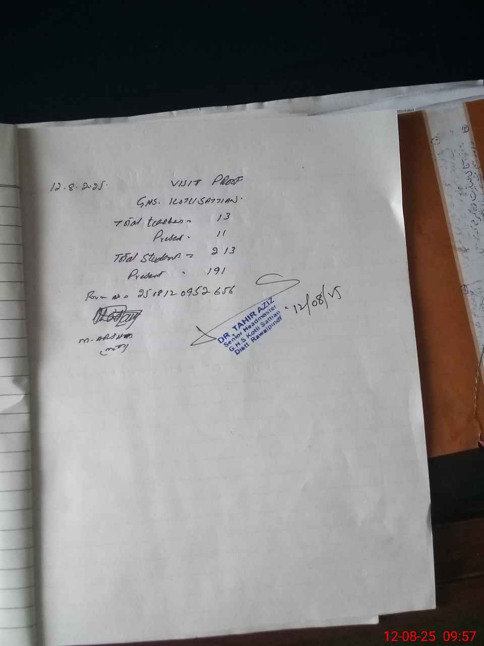 | Attendance Register | Head Teacher | MEA with School | Visit Proof |