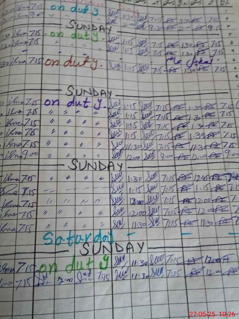 | Leave | Duty | Absent | Maternity | Medical | Ex- Pak |