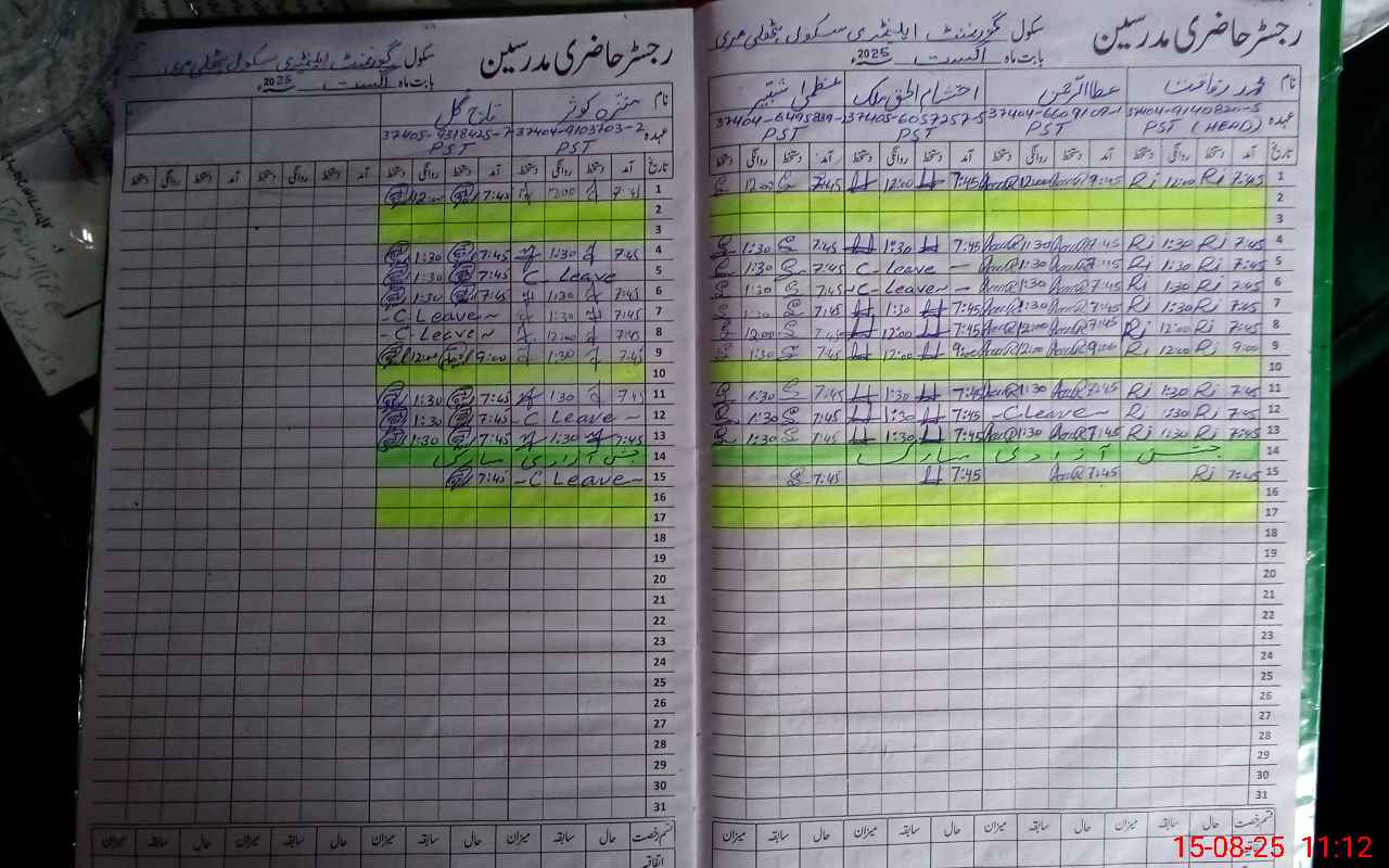 | CNIC | Full Name | Designation | R/C | Absence During Last Calender Month |