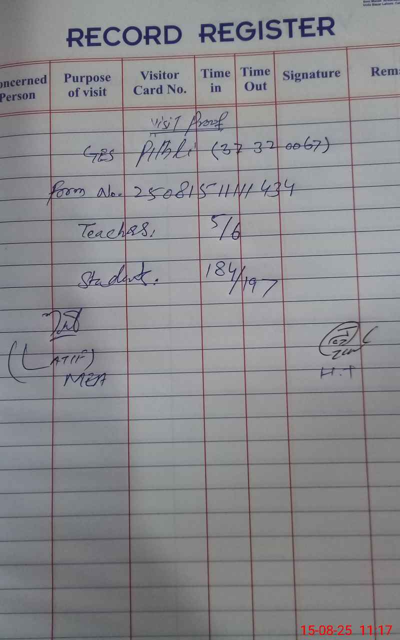 | Certified that this School was Inspected by the Undersigned MEA/DMO Today and the Information Stated Above is as Per Record. | |||||