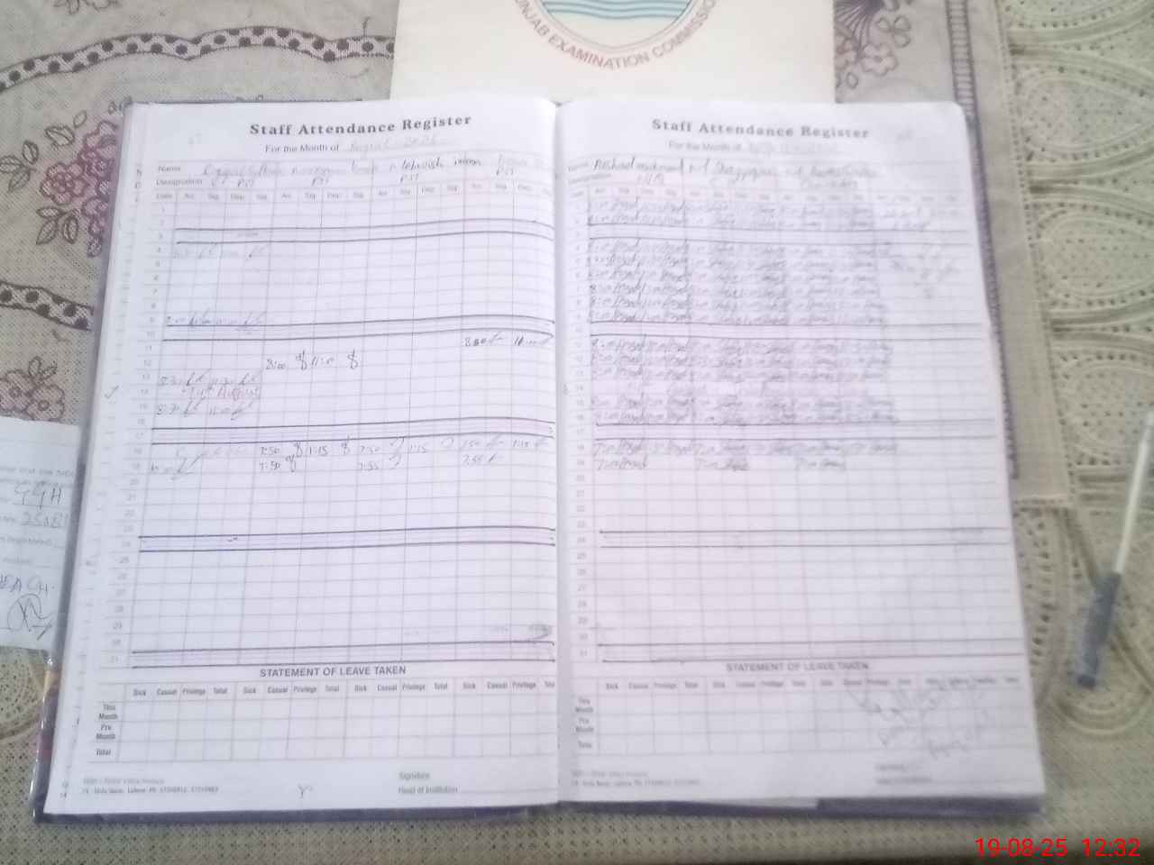 | CNIC | Full Name | Designation | R/C | Absence During Last Calender Month |