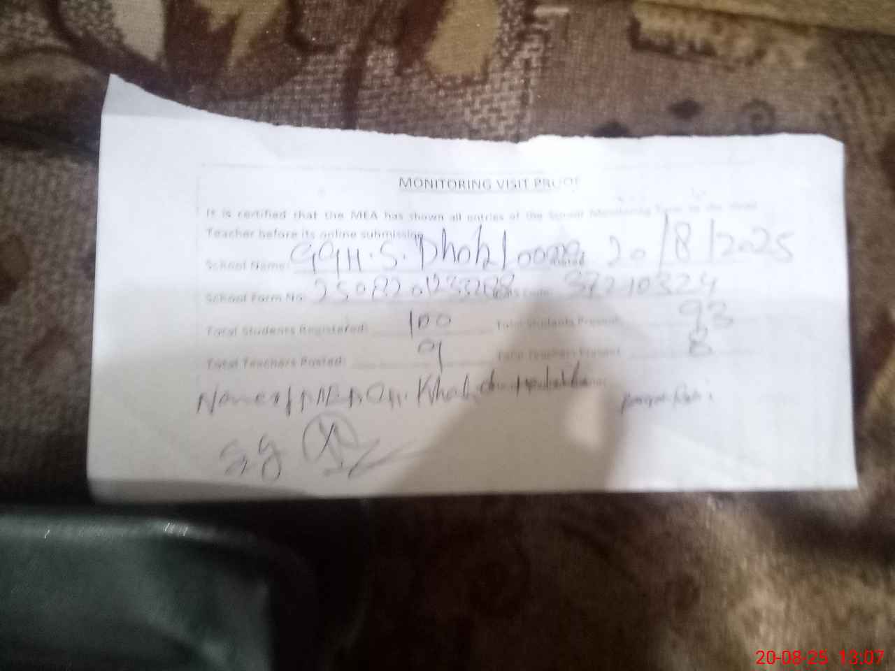 | Monitoring Date: 20-08-2025 | Start Time: 20-08-2025 12:33 PM | End Time: 20-08-2025 01:08 PM | Name of MEA: Kh**** ha**** | |