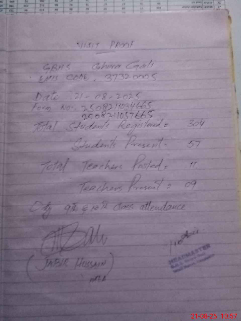 | EMIS Code: 37320005 | Name of School: GHS GHORA GALI | |||