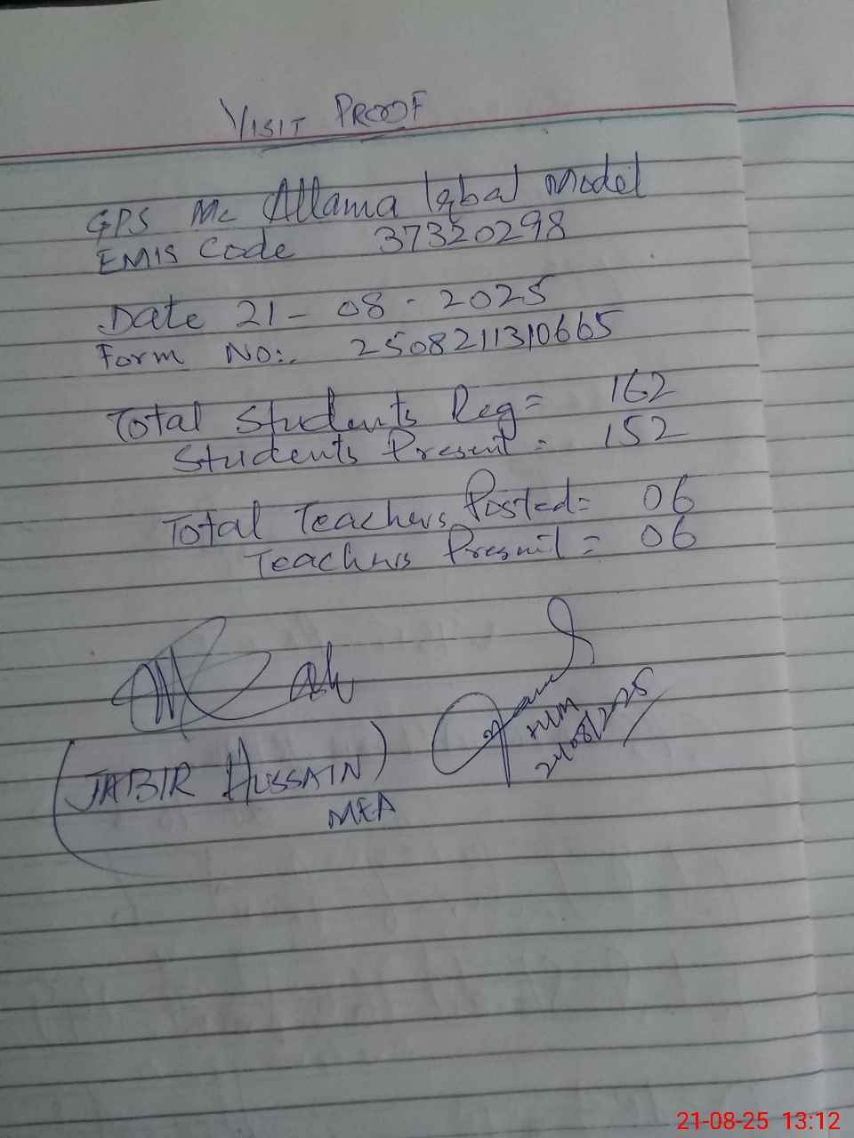 | EMIS Code: 37320298 | Name of School: GPS MC ALLAMA IQBAL MODEL | |||