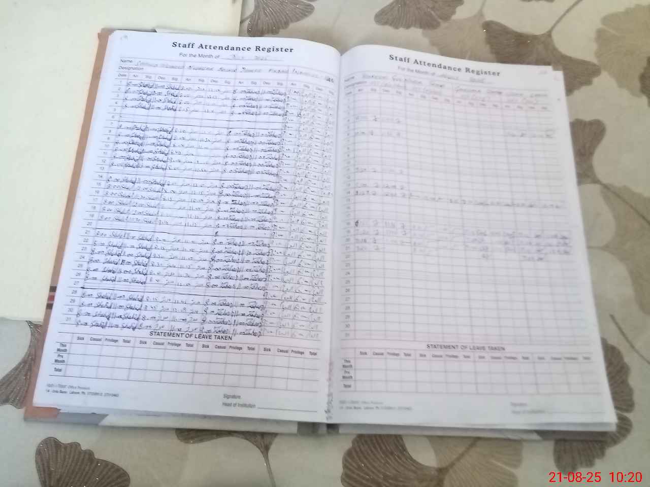 | Leave | Duty | Absent | Maternity | Medical | Ex- Pak |