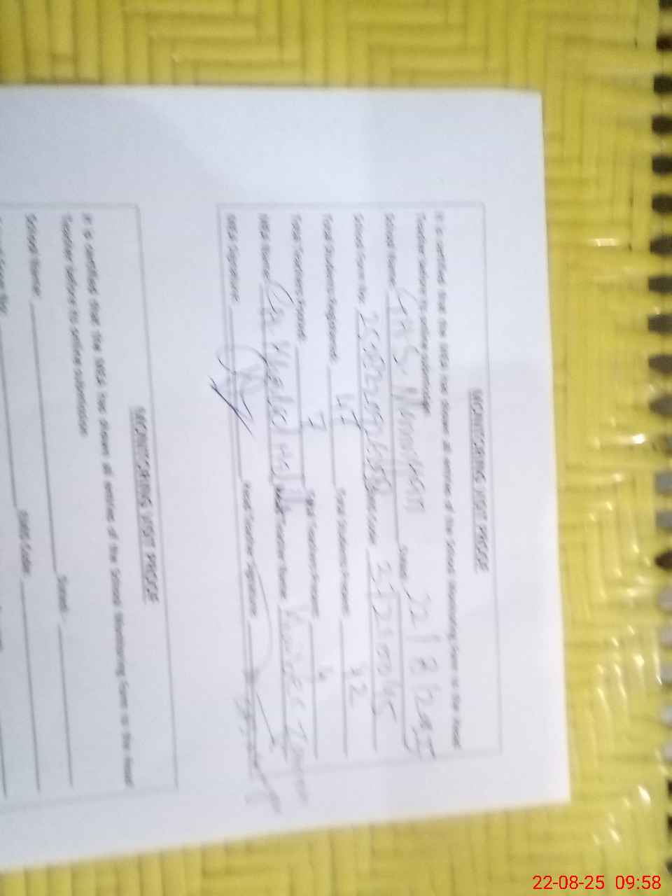 | Monitoring Date: 22-08-2025 | Start Time: 22-08-2025 09:26 AM | End Time: 22-08-2025 10:04 AM | Name of MEA: Kh**** ha**** | |