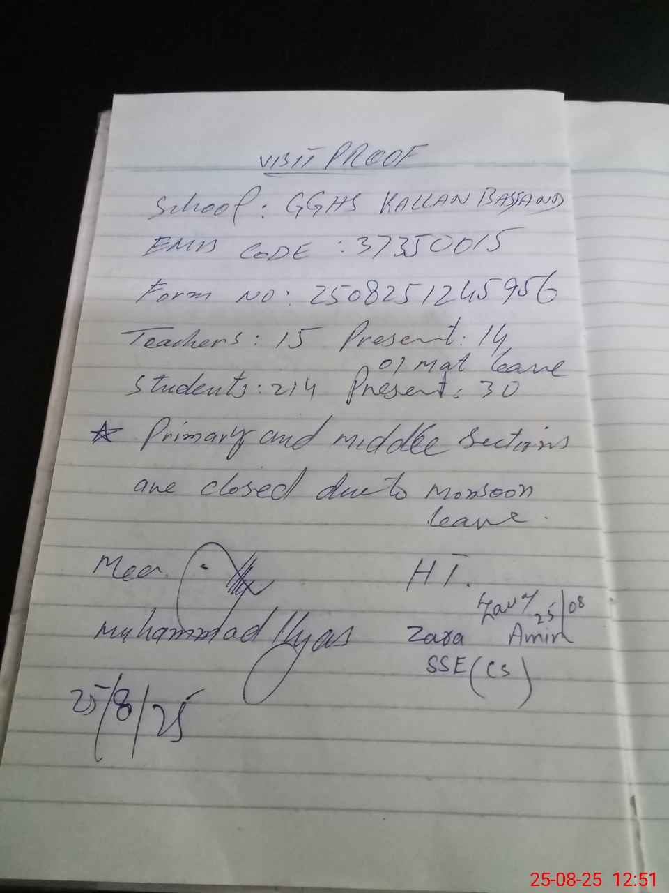 | EMIS Code: 37350015 | Name of School: GGHS KALLEN BASSAND | |||