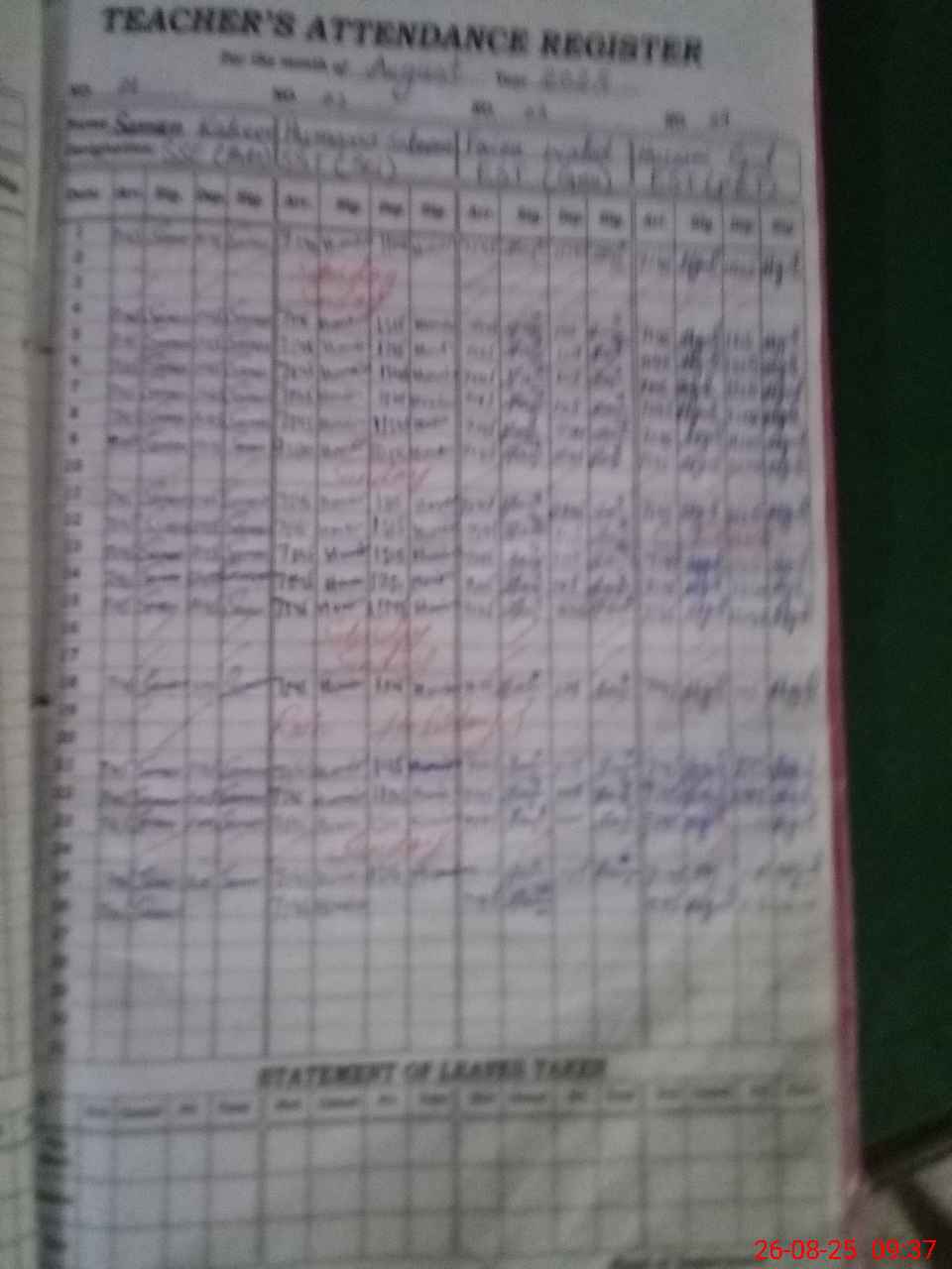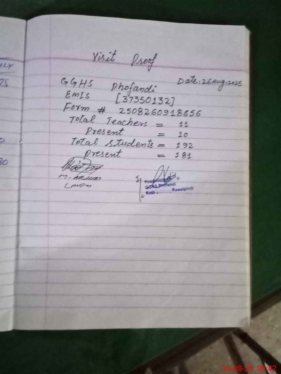 | Attendance Register | Head Teacher | MEA with School | Visit Proof |