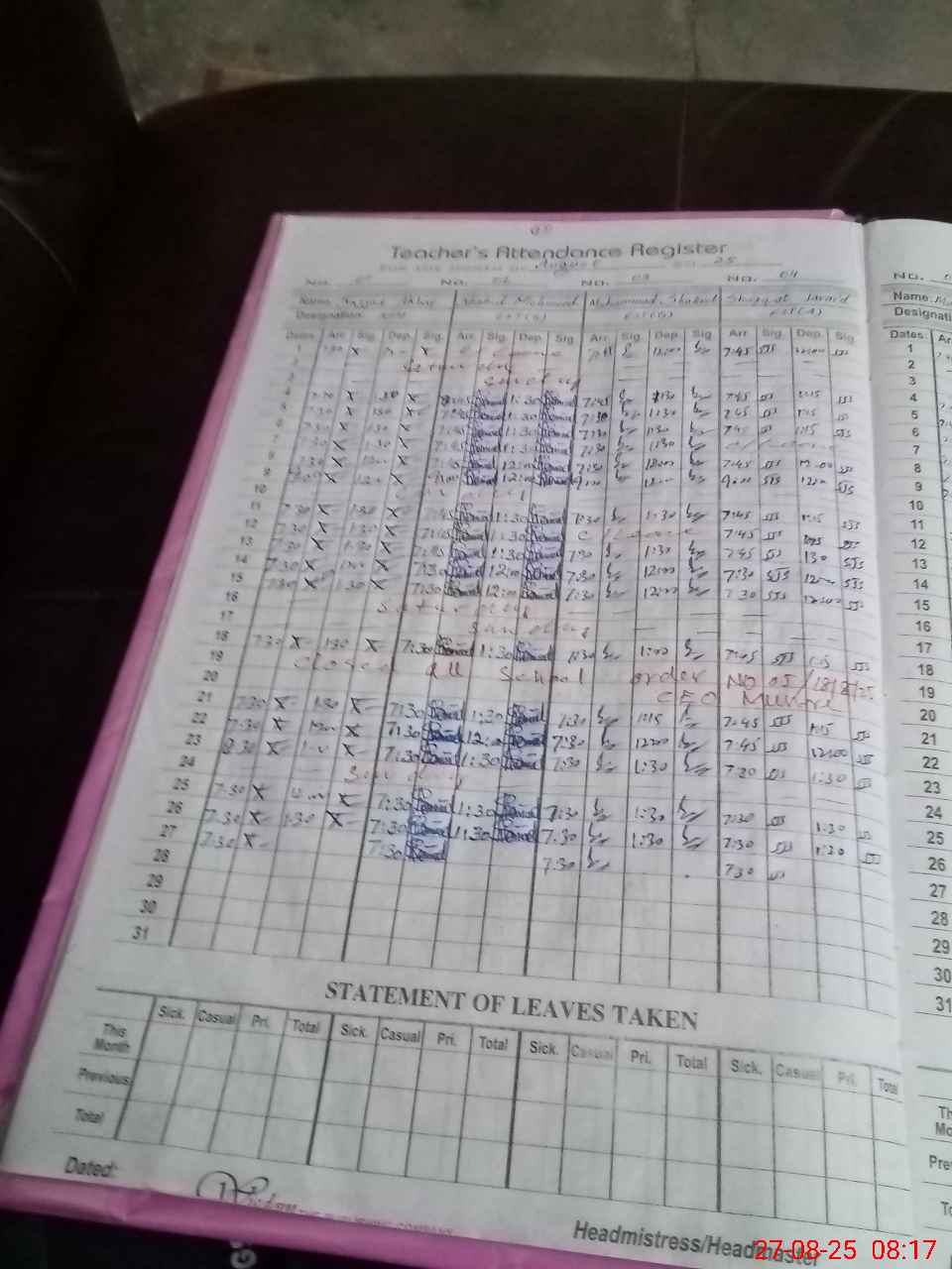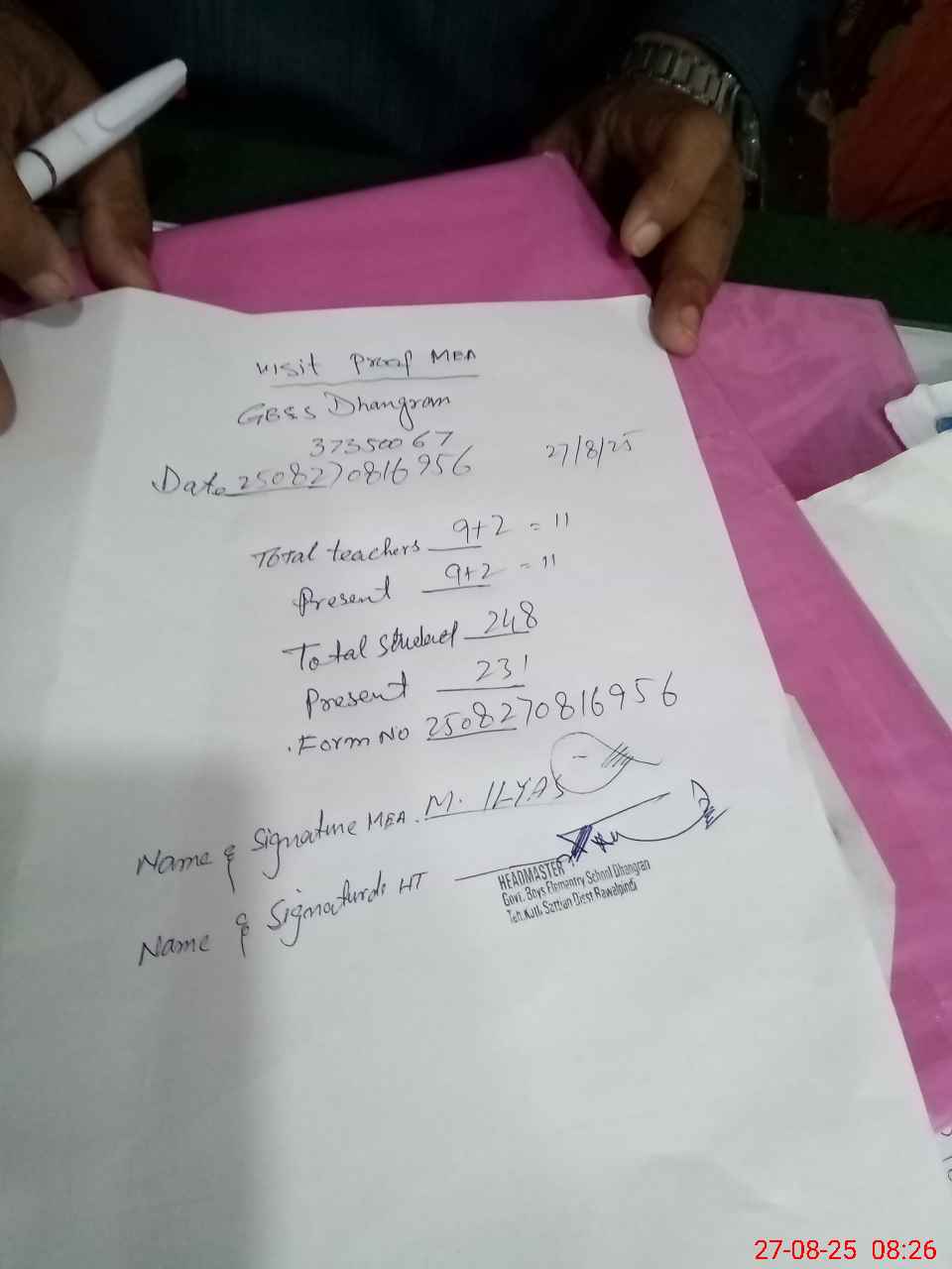 | Attendance Register | Head Teacher | MEA with School | Visit Proof |