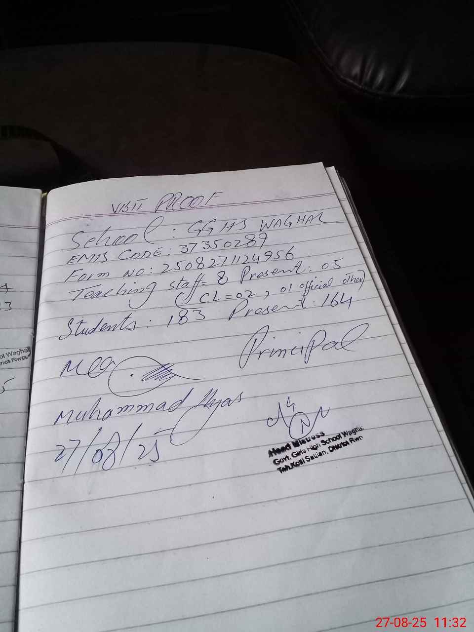 | EMIS Code: 37350289 | Name of School: GGHS WAGHAL | |||