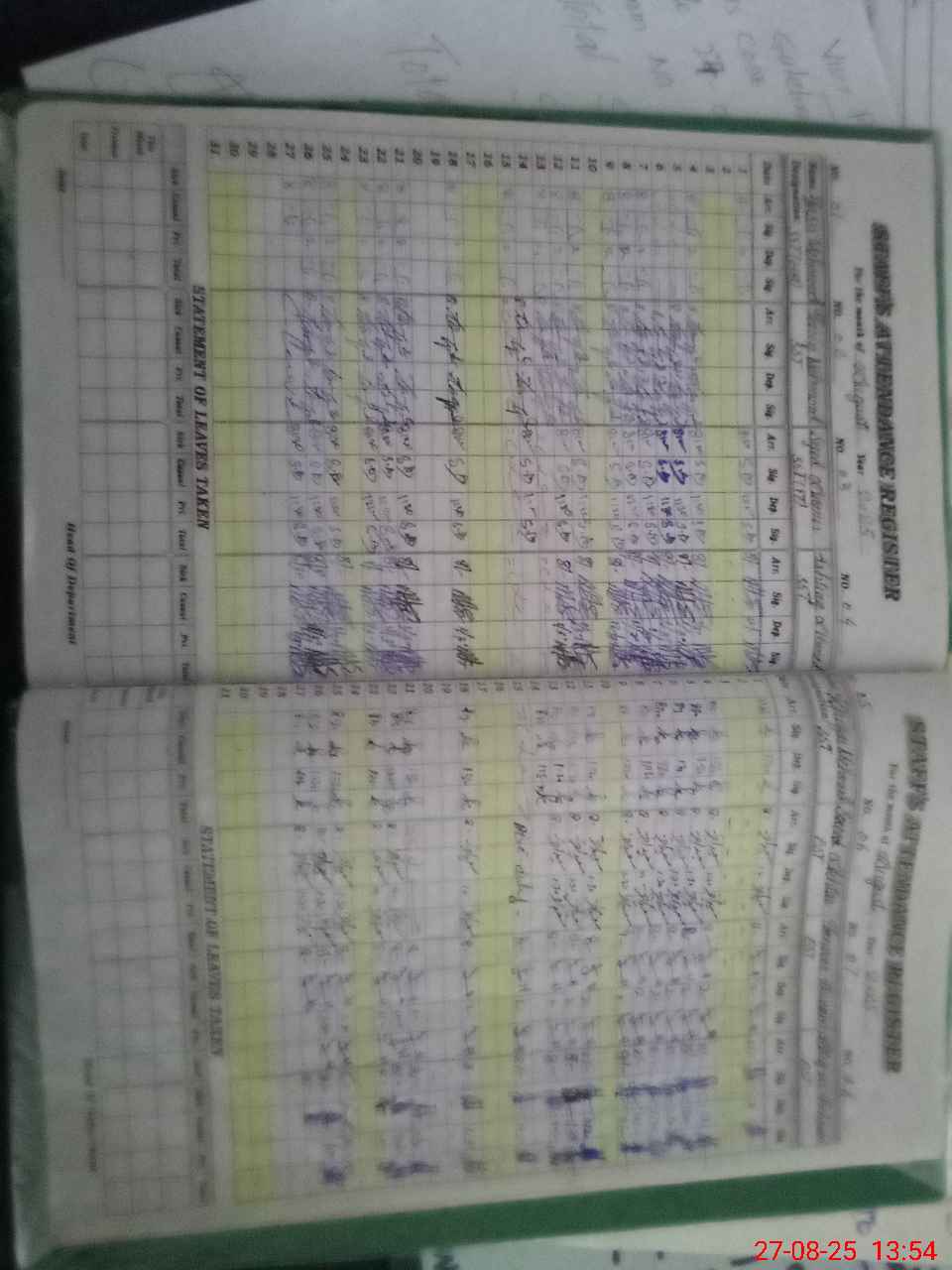 | CNIC | Full Name | Designation | R/C | Absence During Last Calender Month |