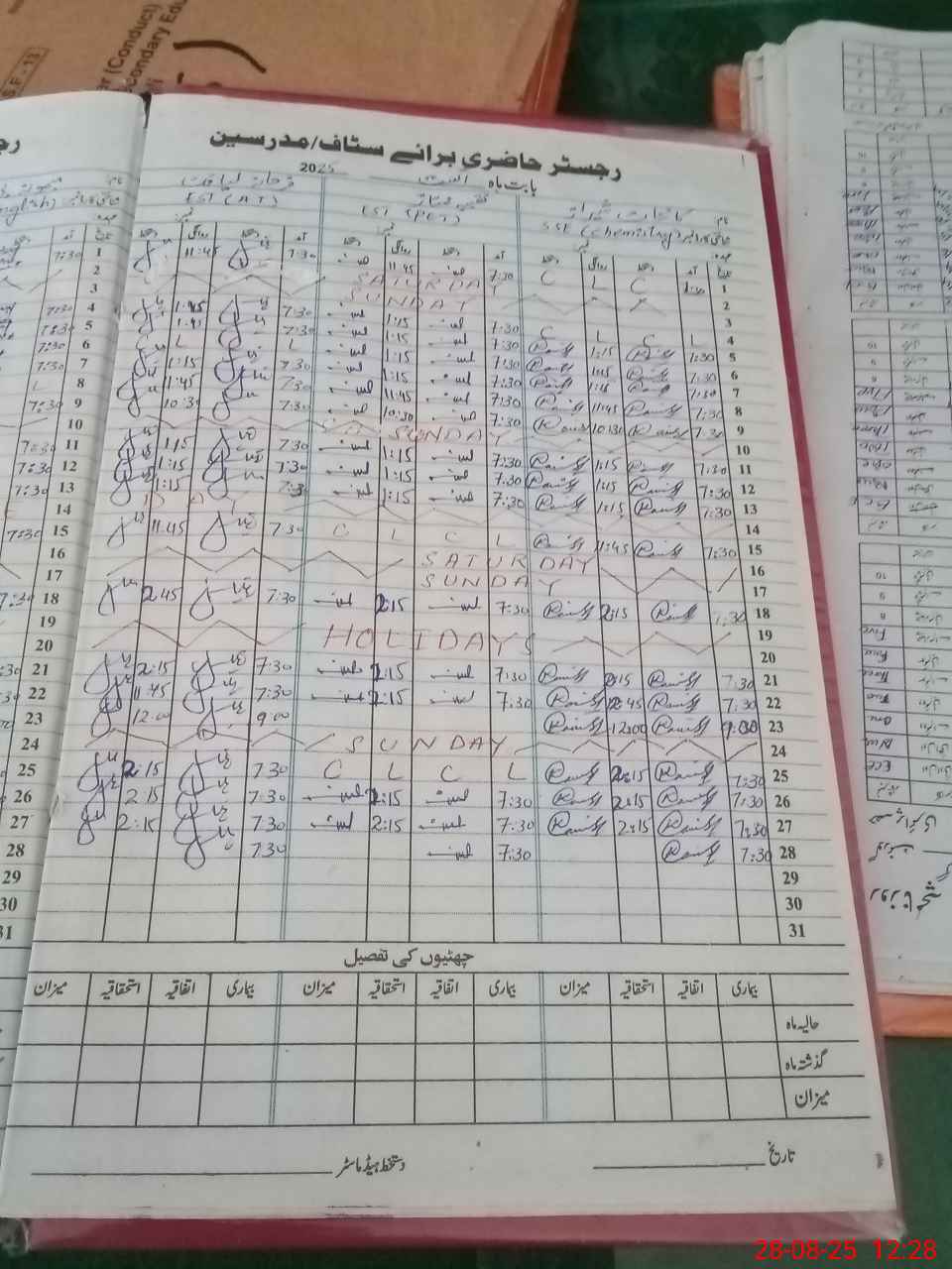 | CNIC | Full Name | Designation | R/C | Absence During Last Calender Month |