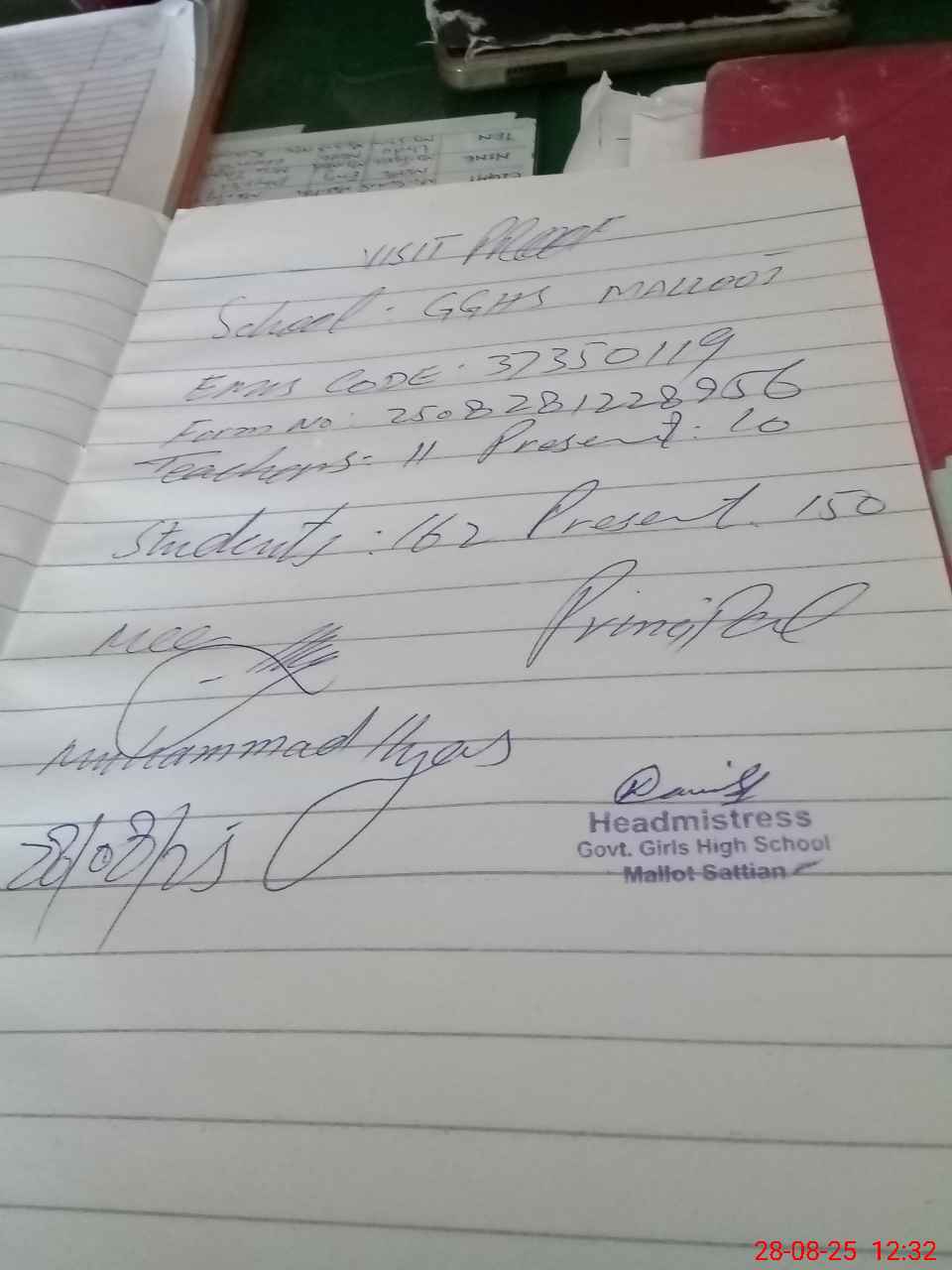 | Attendance Register | Head Teacher | MEA with School | Visit Proof |