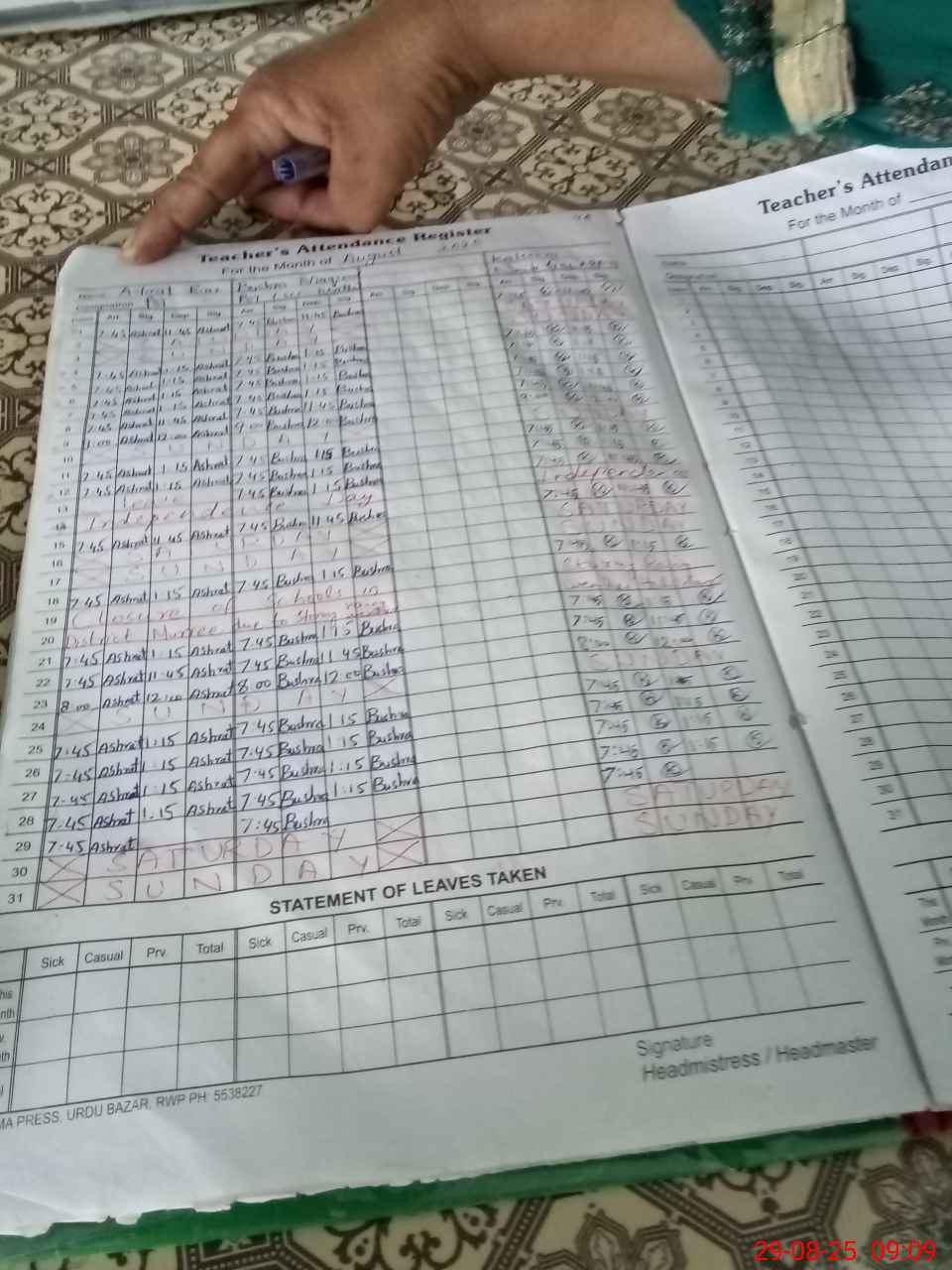 | Name: IS**** RI**** Designation: (School Headmaster's/Headmistress's) PST Phone/Cell Number: 03**** |