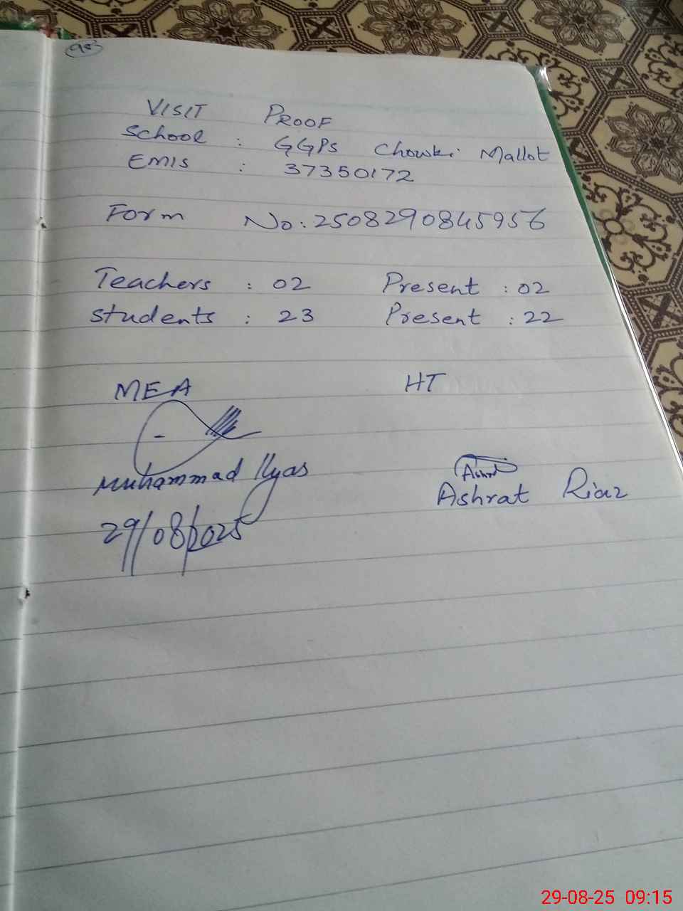 | EMIS Code: 37350172 | Name of School: GGPS CHOWKI MALLOT | |||