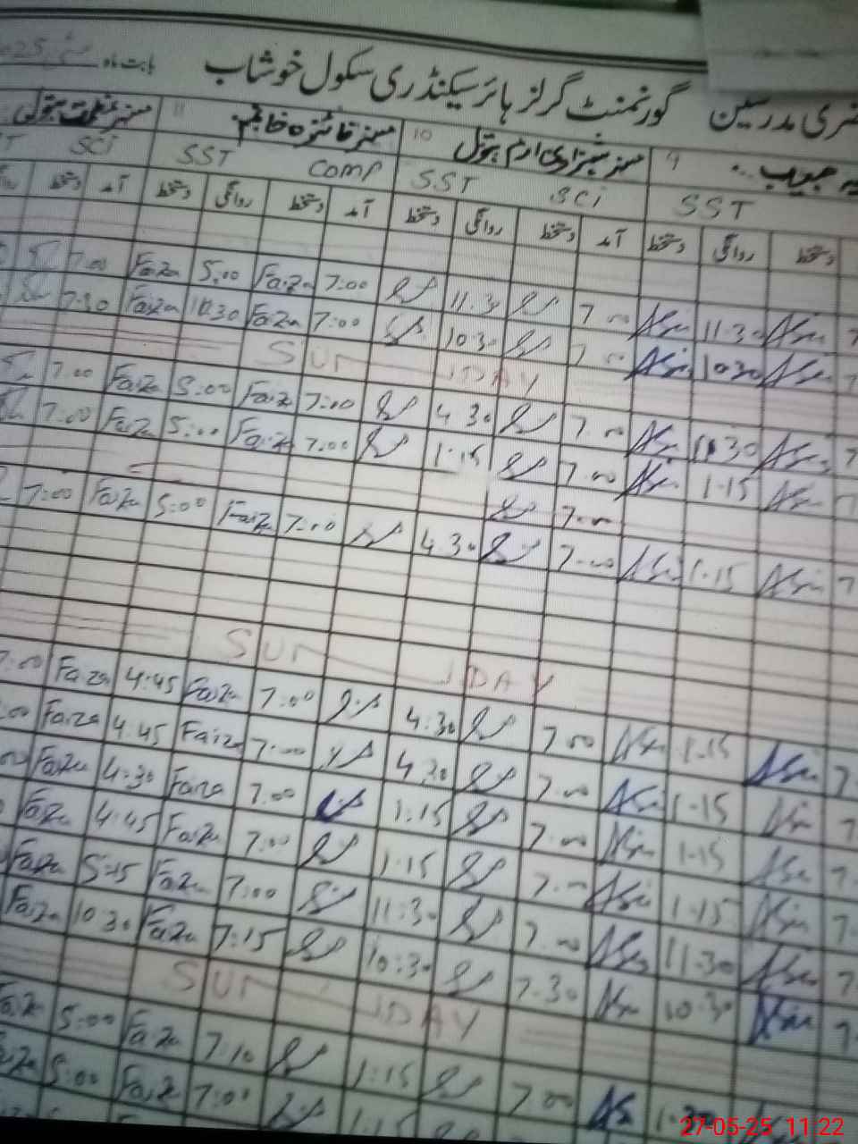 | District: KHUSHAB | Tehsil: KHUSHAB | Markaz: KHUSHAB (FEMALE) | Level: H.Sec. | |