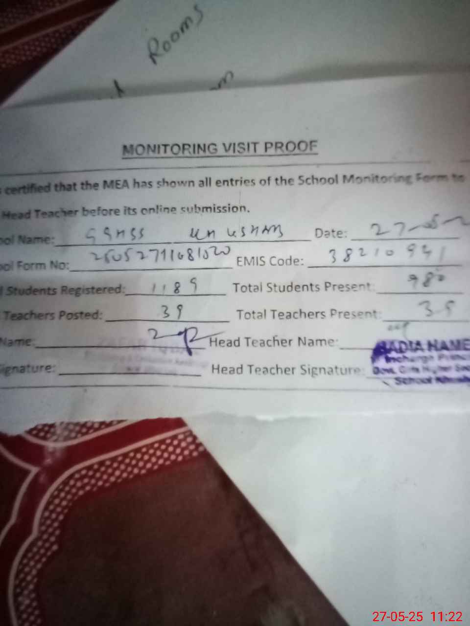 | Certified that this School was Inspected by the Undersigned MEA/DMO Today and the Information Stated Above is as Per Record. | |||||
