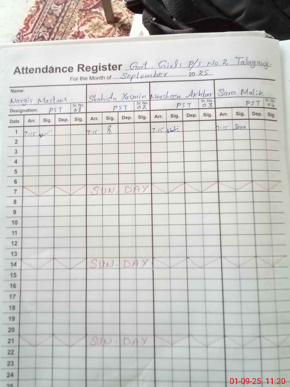| Name: NA**** MA**** Designation: (School Headmaster's/Headmistress's) PST Phone/Cell Number: 03**** |
