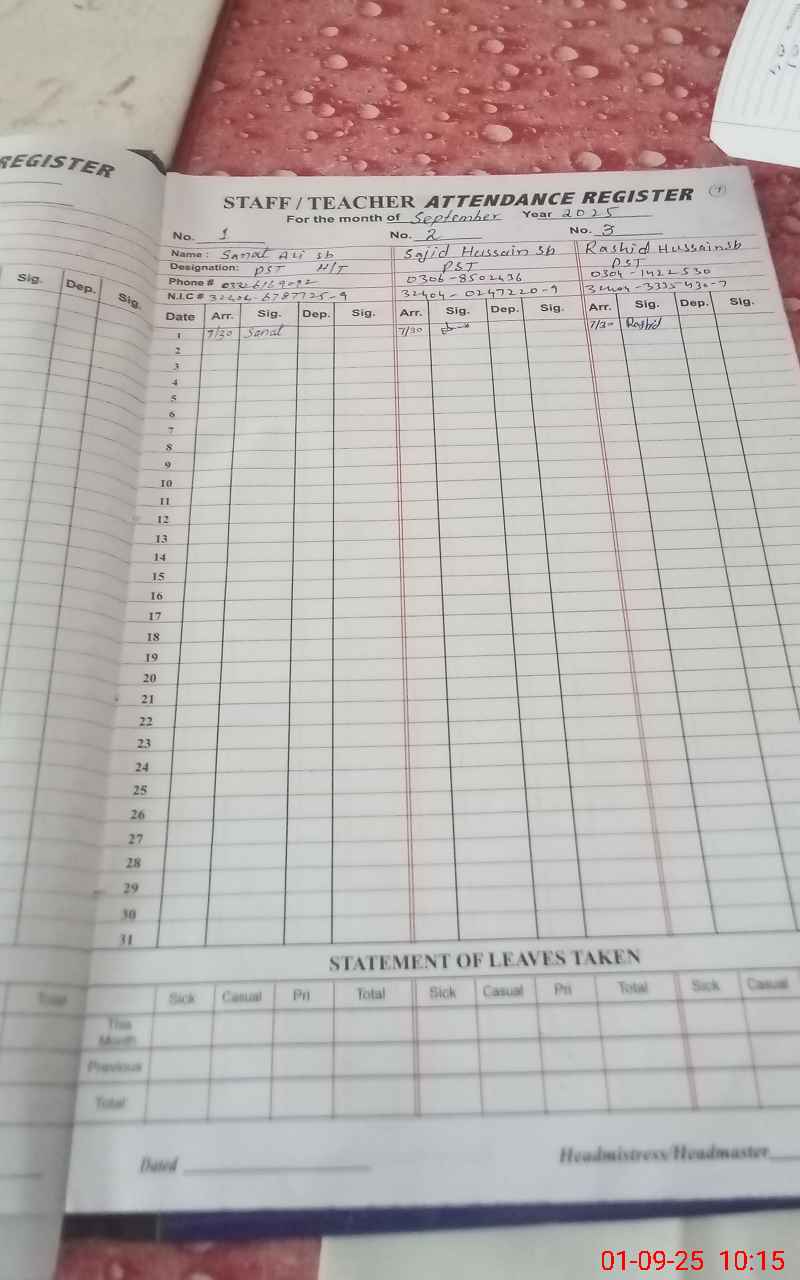 | Name: Sa**** Al**** Designation: (School Headmaster's/Headmistress's) PST Head Phone/Cell Number: 03**** |