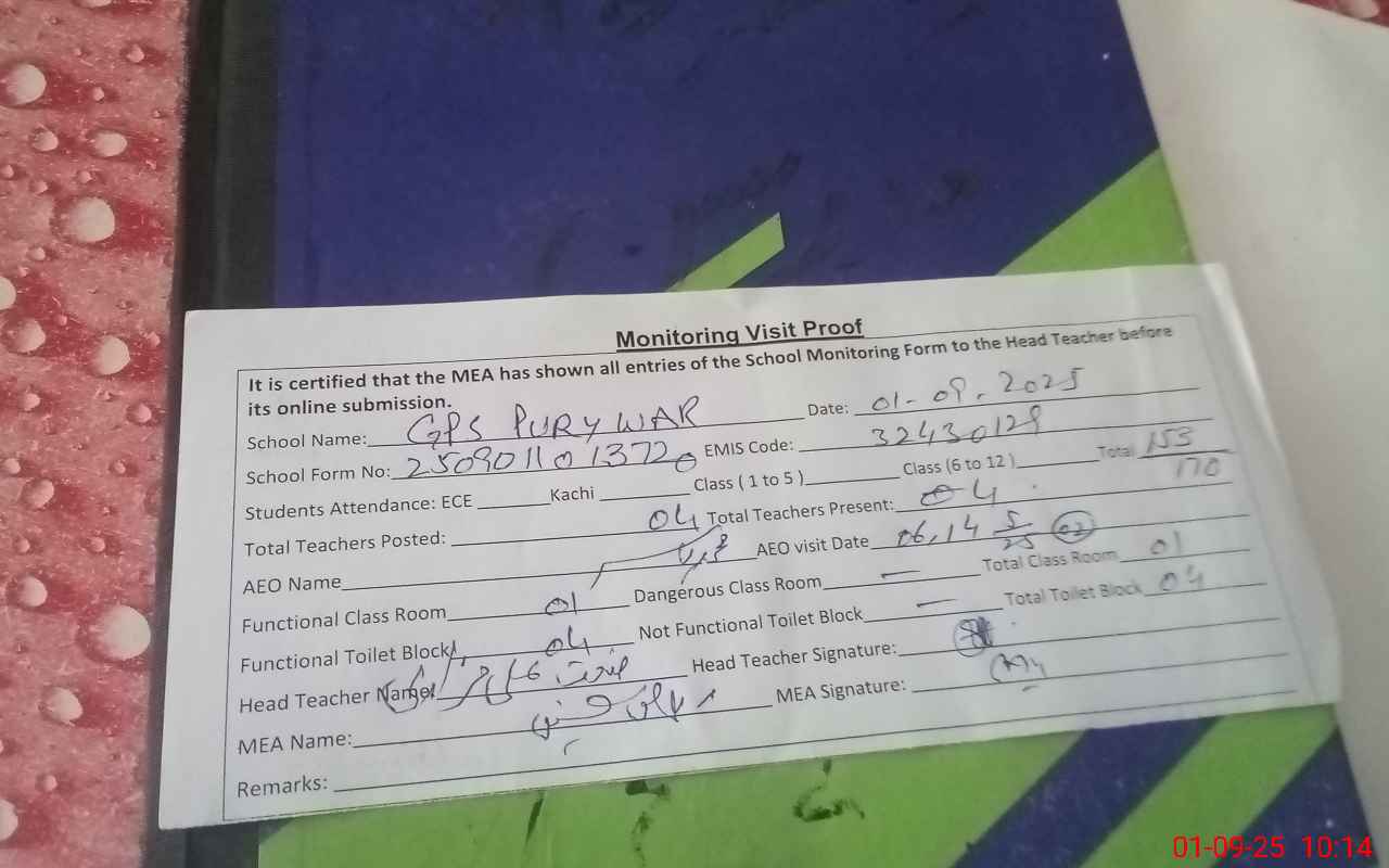 | EMIS Code: 32430129 | Name of School: GPS PURY WAR | |||