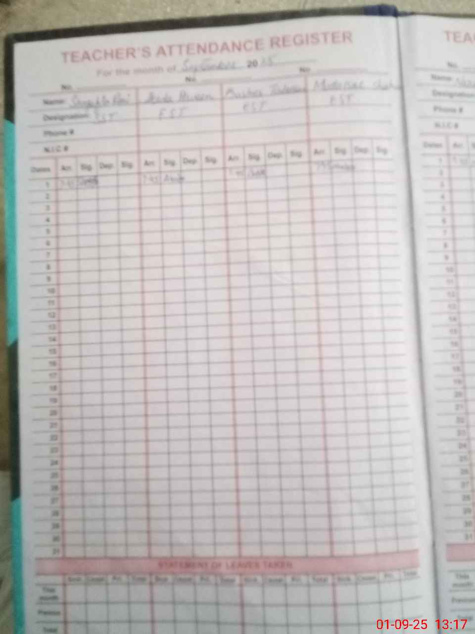 | Name: SH**** RA**** Designation: (School Headmaster's/Headmistress's) S.S.T.(ARTS) Phone/Cell Number: 03**** |