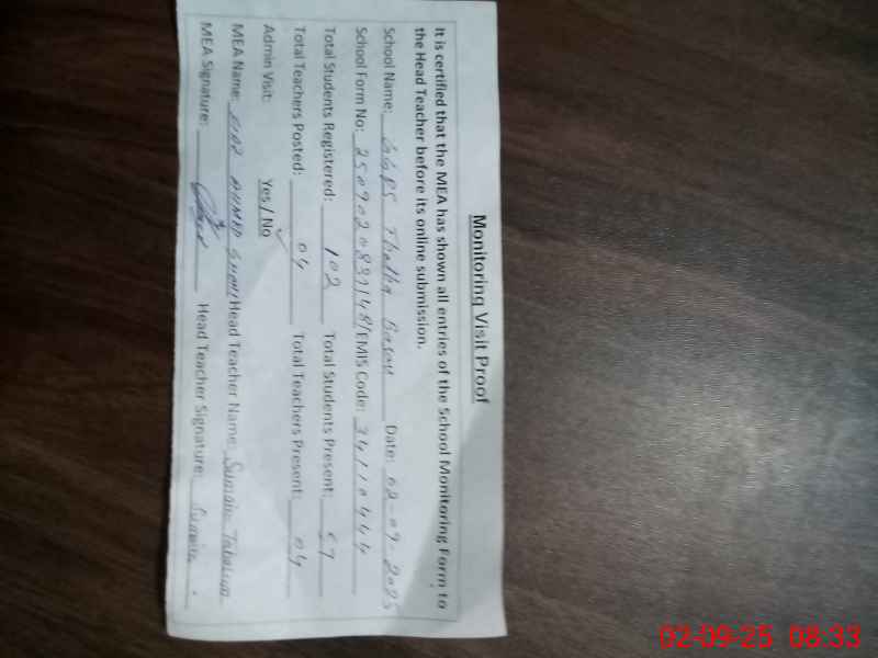 | Remarks (Use Separate Page if Required): Attendance of teaching staff and students on SIS Software is not updated at the time of visit NSB and FTF Record Registers are not available at the time of visit D3 profarma and Free Books Record Register also not available at the time of visit Data as per provided by School staff and found during physical visit | |||||