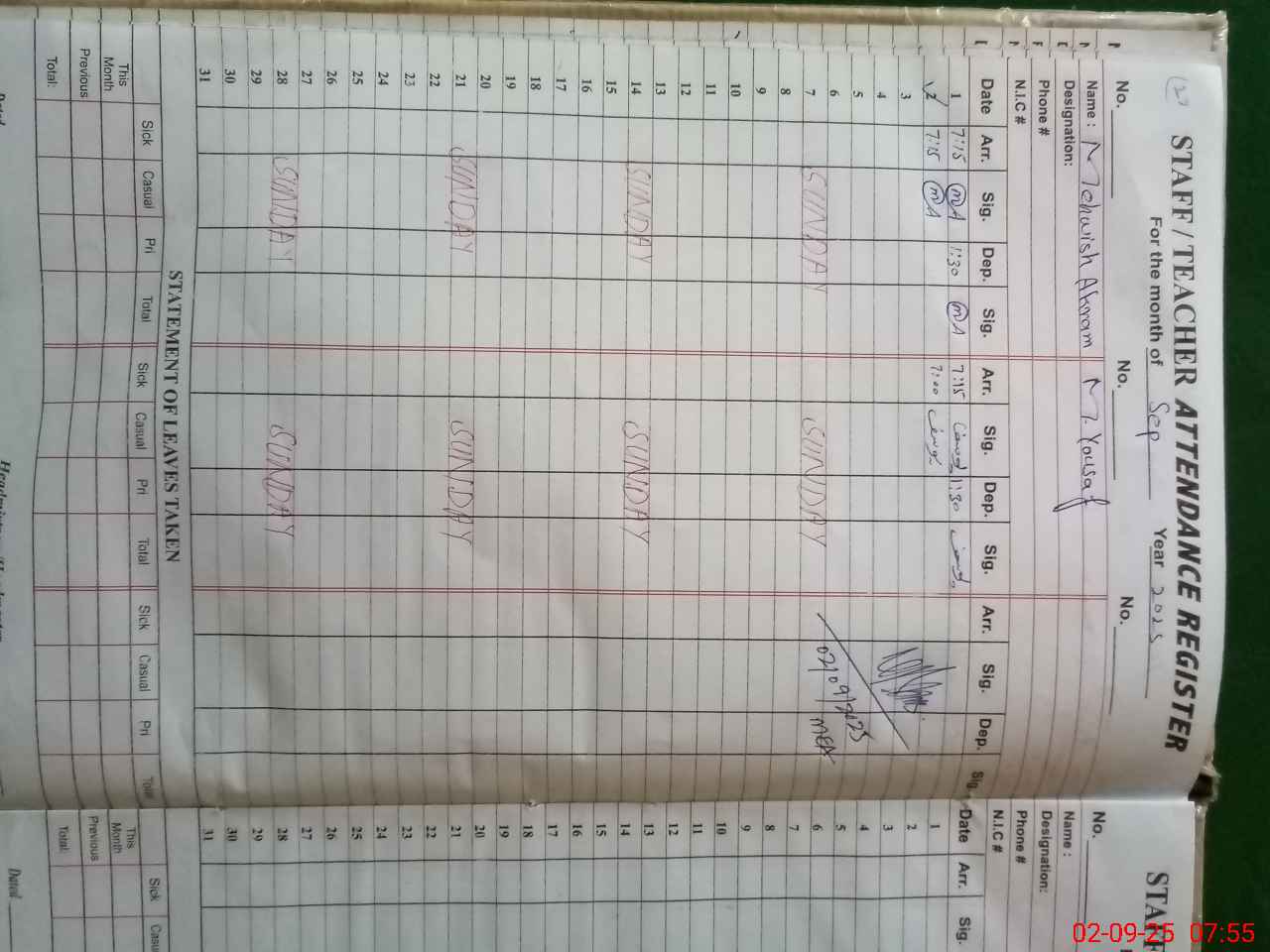 | Name: KA**** FI**** Designation: (School Headmaster's/Headmistress's) SSE (GENERAL) Phone/Cell Number: 03**** |