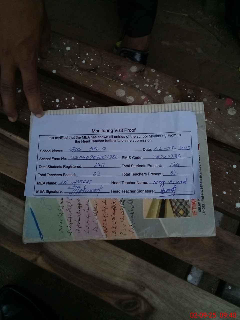 | EMIS Code: 39210286 | Name of School: GPS 58/D | |||