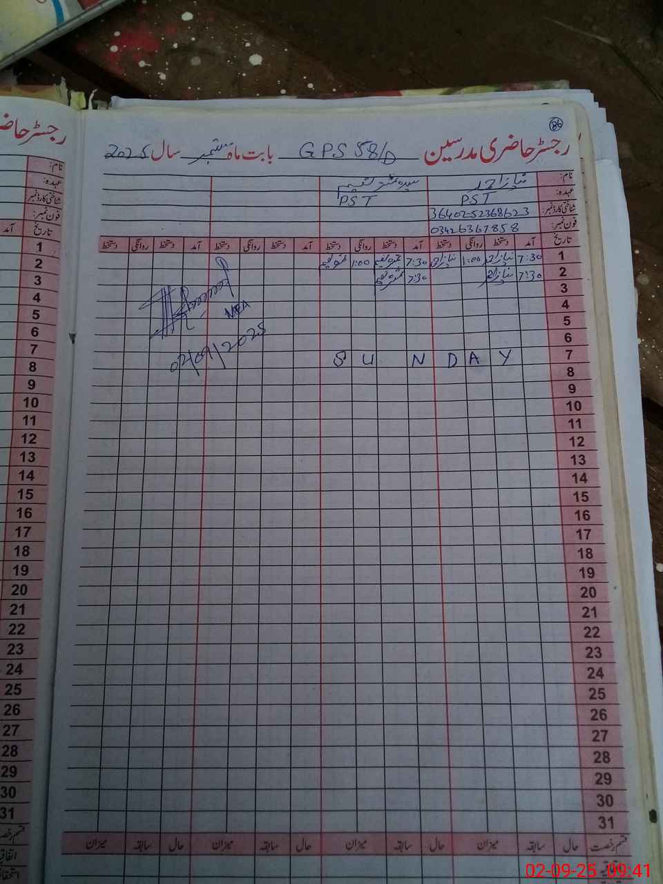 | Name: Sy**** Sa**** Na**** Designation: (School Headmaster's/Headmistress's) PST Phone/Cell Number: 03**** |