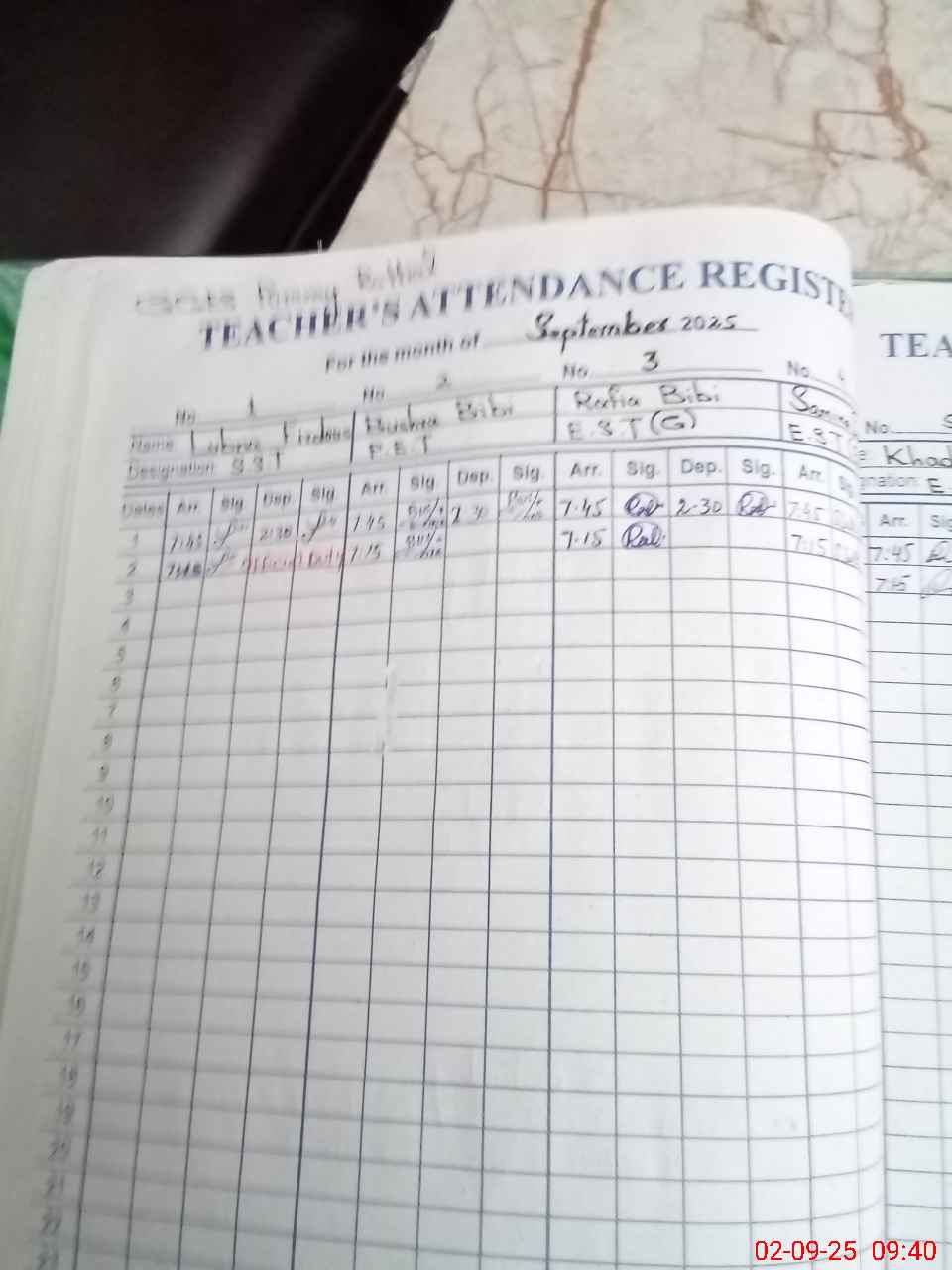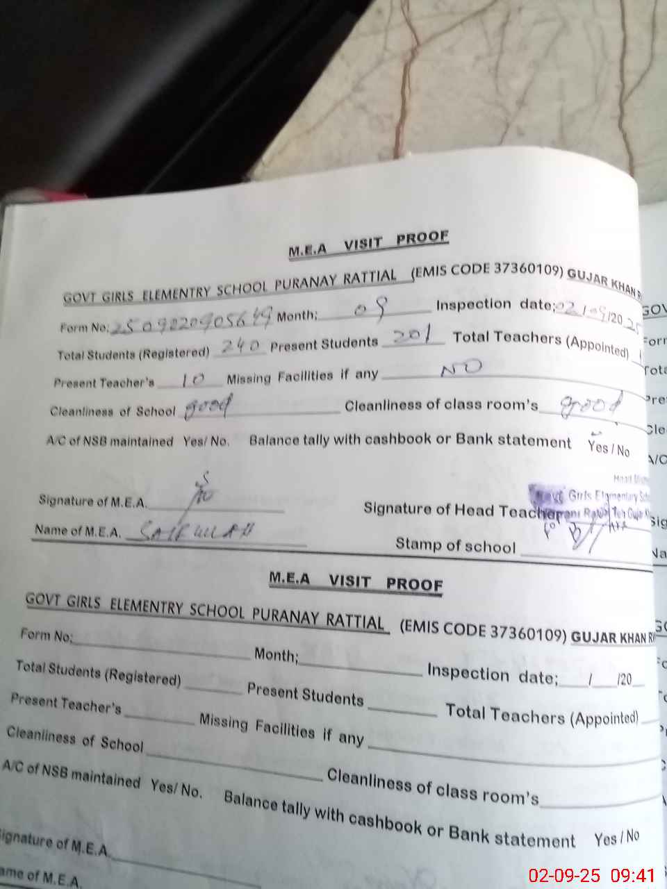 | Attendance Register | Head Teacher | MEA with School | Visit Proof |