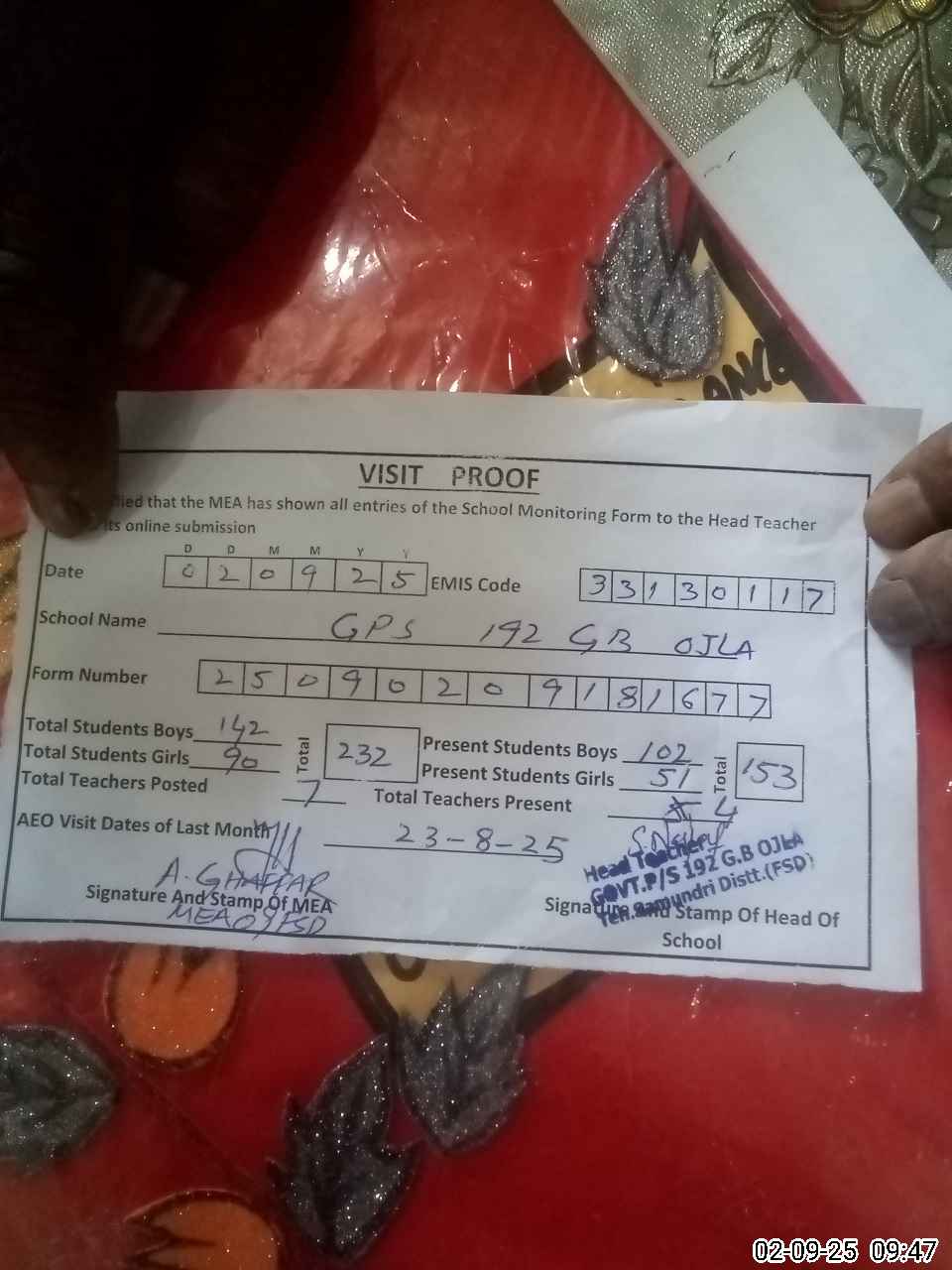 | EMIS Code: 33130117 | Name of School: GPS 192 GB OJLA | |||