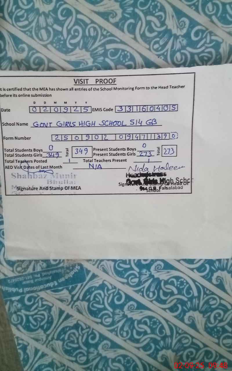 | EMIS Code: 33160405 | Name of School: GGHS 514 GB | |||