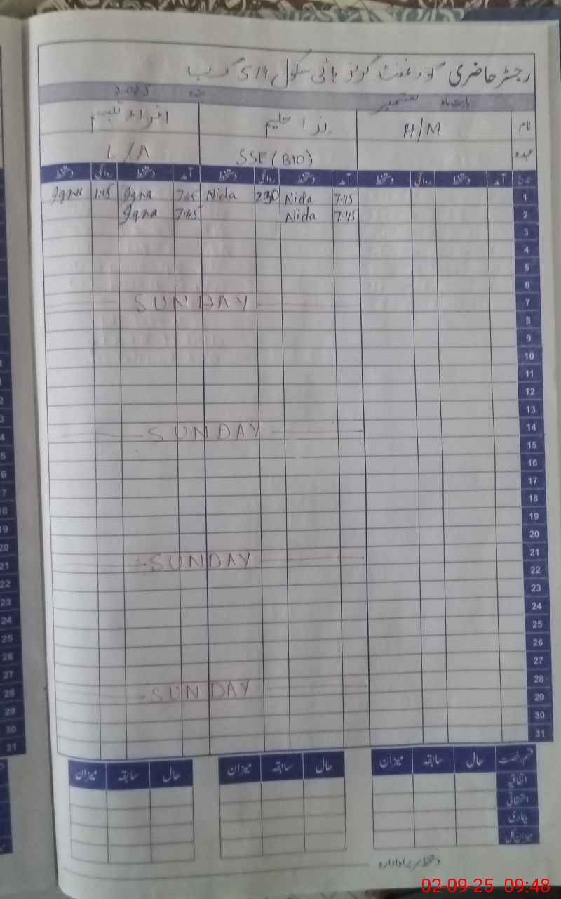 | Name: NI**** HA**** Designation: (School Headmaster's/Headmistress's) SSE (BIOLOGY) Phone/Cell Number: 03**** |