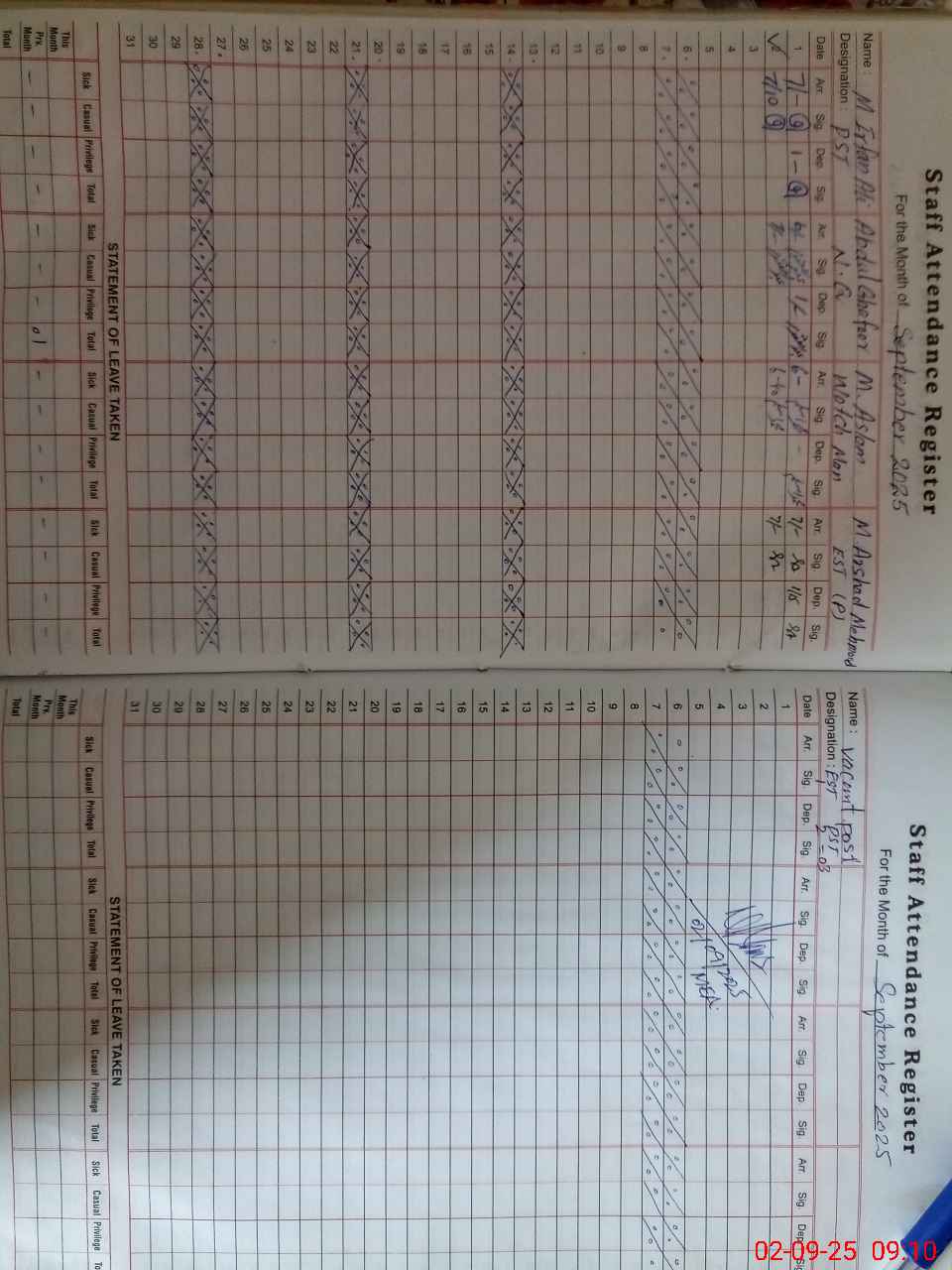 | CNIC | Full Name | Designation | R/C | Absence During Last Calender Month |